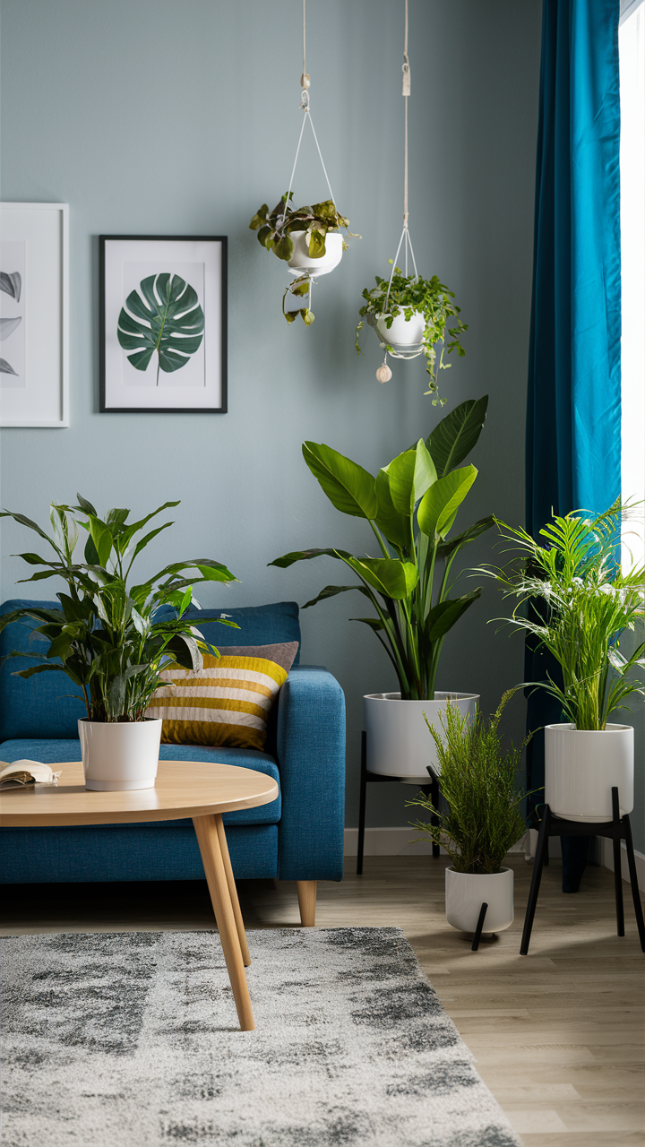 Plants and Greenery in a Gray and Blue Room