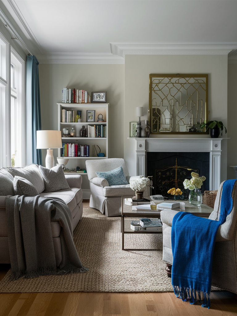 Throws are the most important aspect that can transform your space into a warm and homely setting that is part of gray and blue living room ideas decor. Choose throws in different tones of blue and gray and put them on the sofas and armchairs. Besides the bonus of additional heat, the addition of extra layers with texture and color to your seating areas is also made easy by this trick.