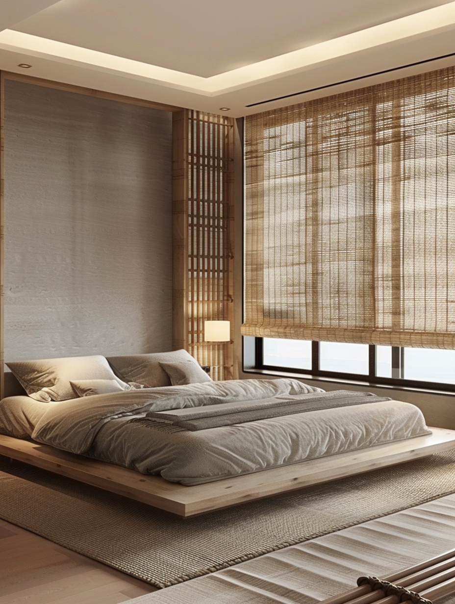 A gray Zen bedroom from Asia is awfully calm plus simple. Serene gray walls provide a serene atmosphere, complemented by bamboo and wood for a natural and warm look and feel. The key features of a Zen-like room are minimalist furniture and the use of soft and neutral colors.