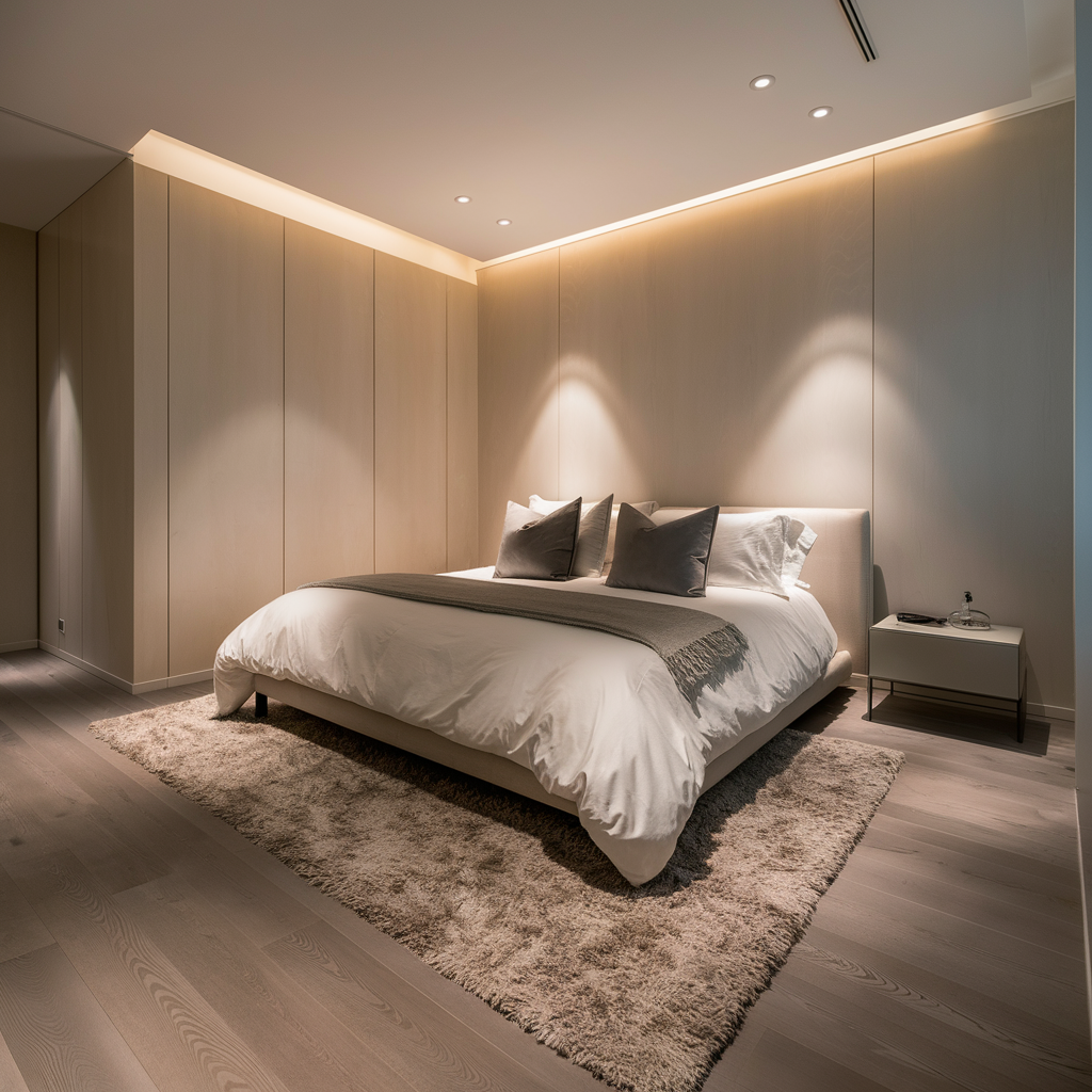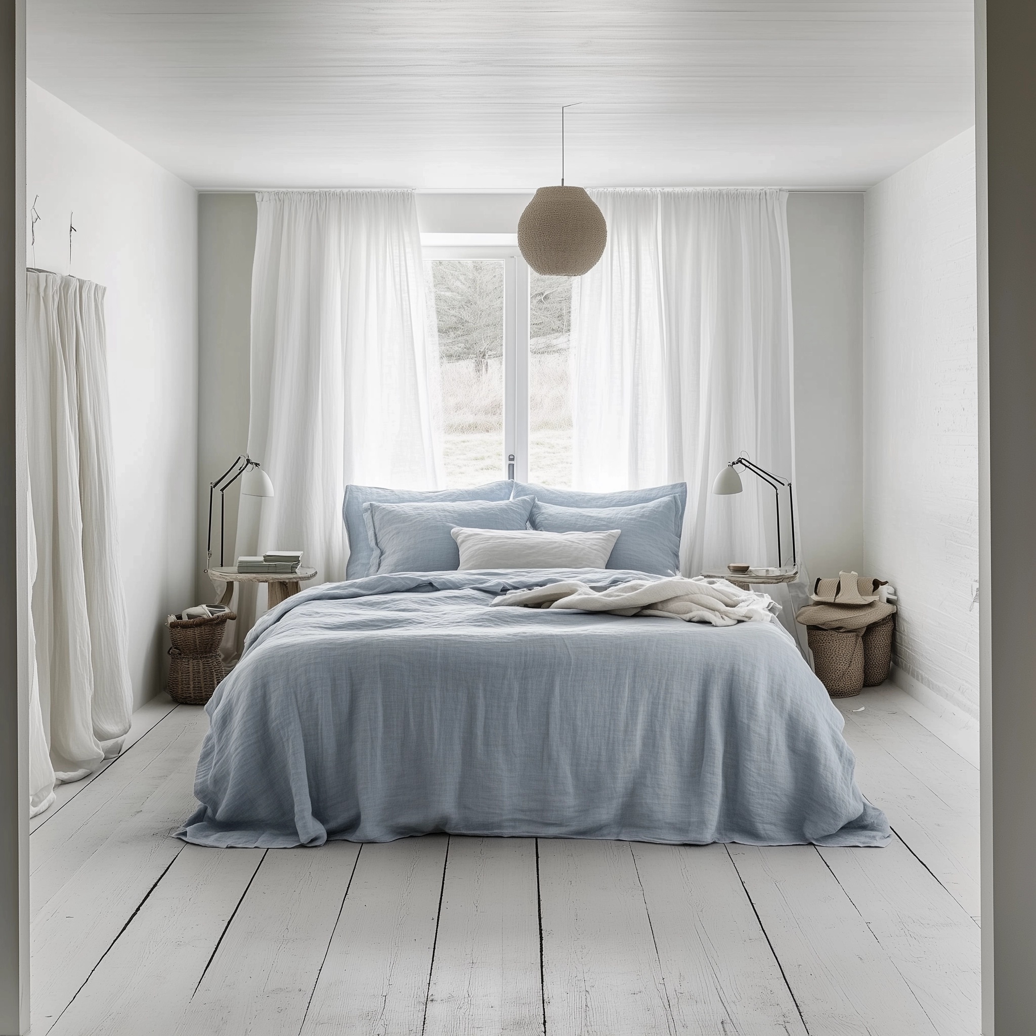 A subtle yet graceful environment is created by a lean plank grays floor, in a setting offering such a floor that is sleek and neat. The skinny slats drew attention to the exterior of the room, which had been mainly dedicated to the bed, reading, and bathroom. Planks are a versatile choice for interiors of all kinds but mostly suitable for bedrooms, bathrooms, and living rooms of modest sizes. Since gray is a neutral color, it will complement the other colors used in the rooms, mostly black or white.