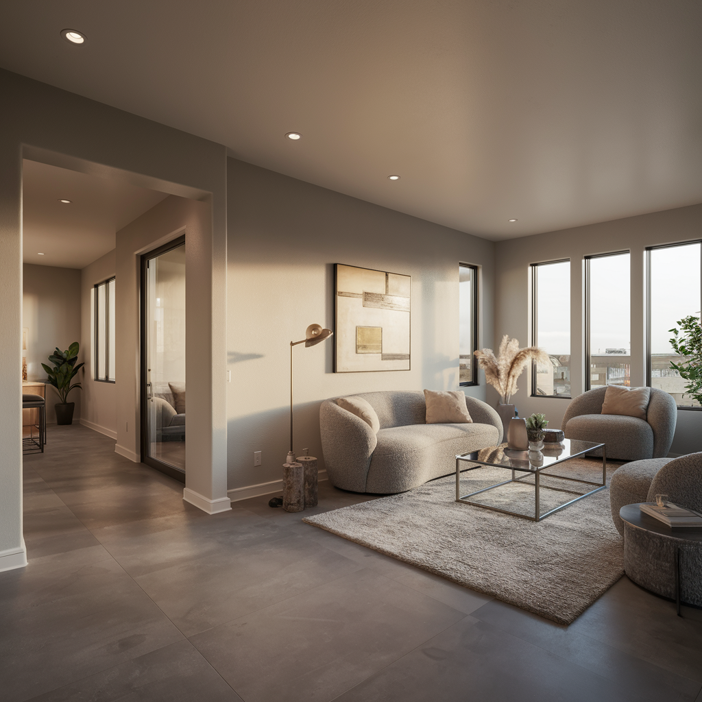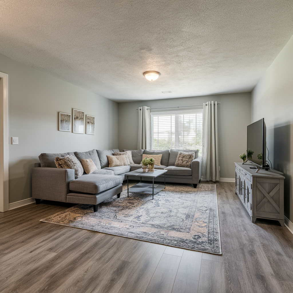 Gray flooring is most adaptable, thus, it can be used in any room in your home. Whether it is a gray flooring living room with a sophisticated ambiance or a cozy gray floor bedroom with a relaxing atmosphere, gray floors give a neutral base that can be designed to fit living room color schemes and bedroom ideas. Gray floors may be used both in ultra-modern and traditional living room decorations harmonizing them.