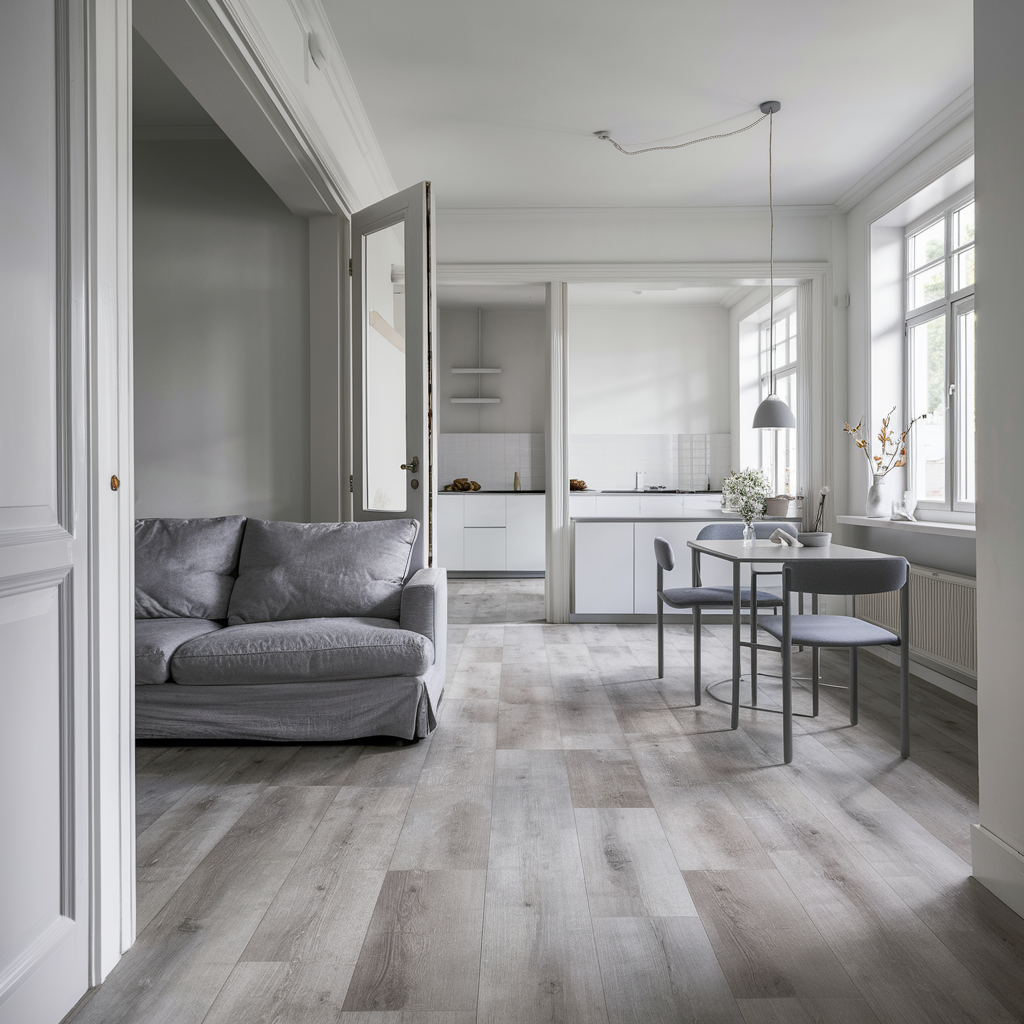 Before we start off with choosing gray floors for apartments, we need to understand how aesthetics and practicalities intersect here. Apartments are usually limited in size, hence, a good idea is to use light gray floors to create an illusion of a larger, less cramped room. Not to mention, it’s also a great way to hide dirt with light gray vinyl. Besides, time and cost saving are other benefits gained from using these materials.