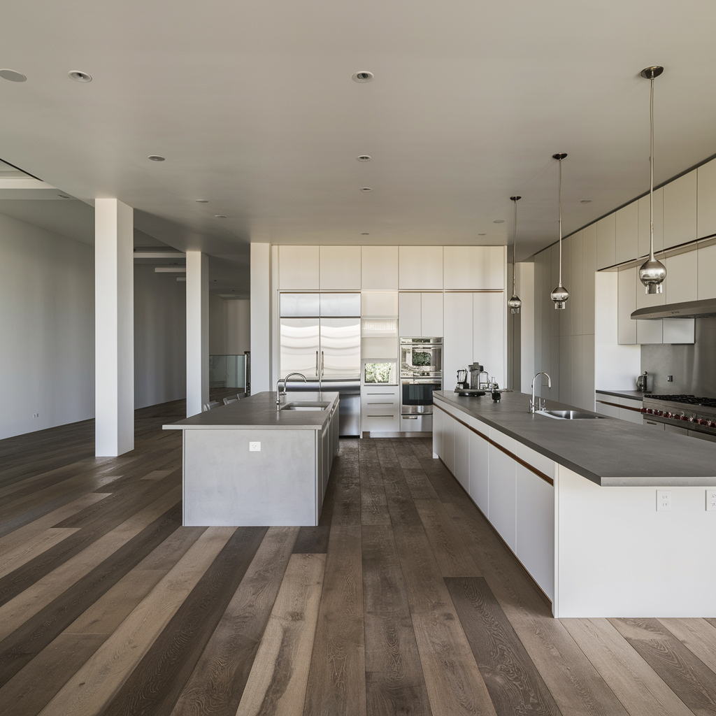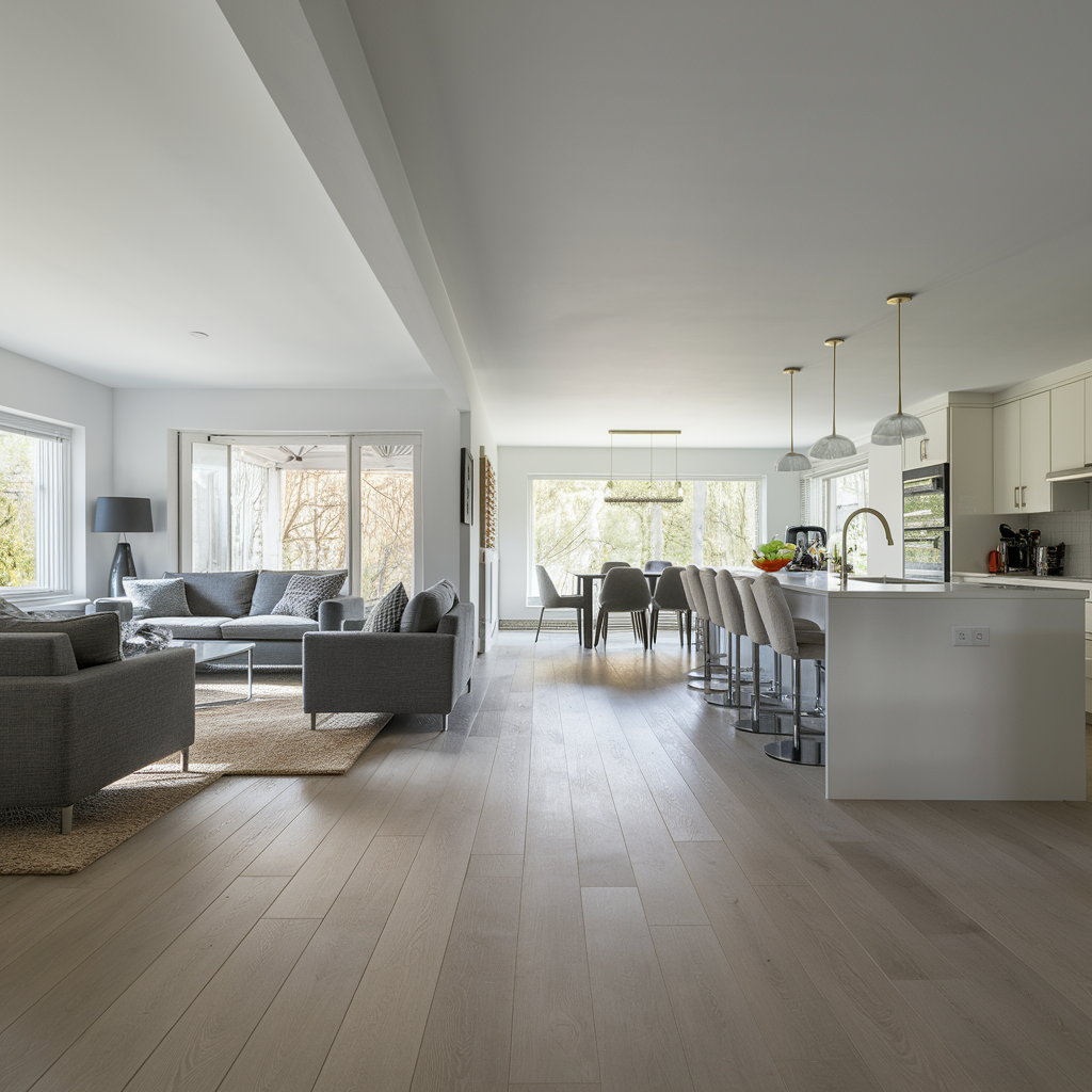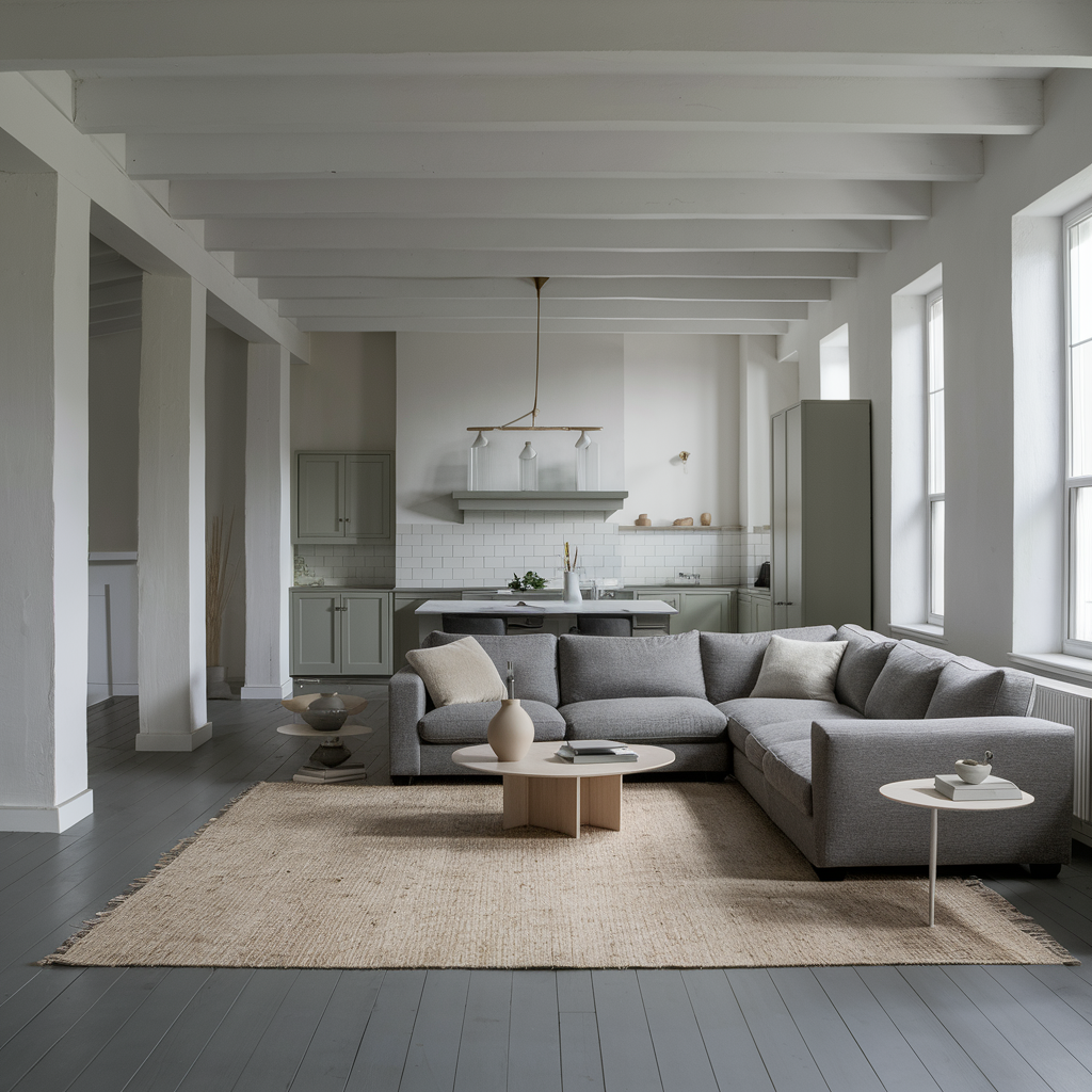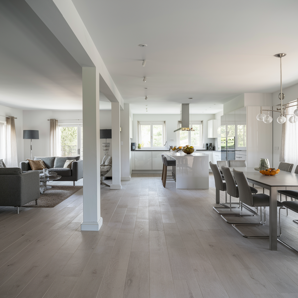 Gray floors are a perfect option for open plan living spaces, where the seamless flow between the areas is the key. The soft shade of gray can be used to merge contrasting spaces without creating a harsh visual effect. In an open plan arrangement, gray floors can be a unifying element, matching different color schemes that include living rooms along with kitchens, thus also being kitchen with living areas.