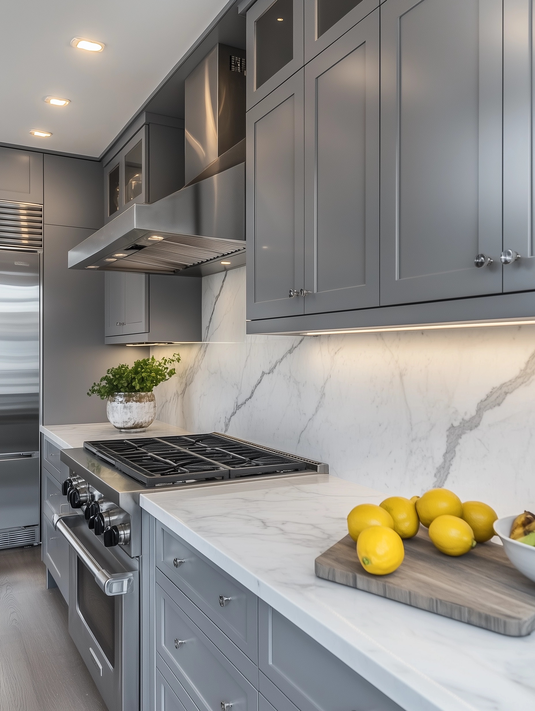 A gray kitchen backsplash is a way to touch up your kitchen with texture and a visual attraction. Subway tiles, marble, or mosaic tiles are some of the examples that can help to make a fabulous central point. A well-thought-out gray backsplash can bring together different parts of your kitchen, thus, enhancing the overall design.