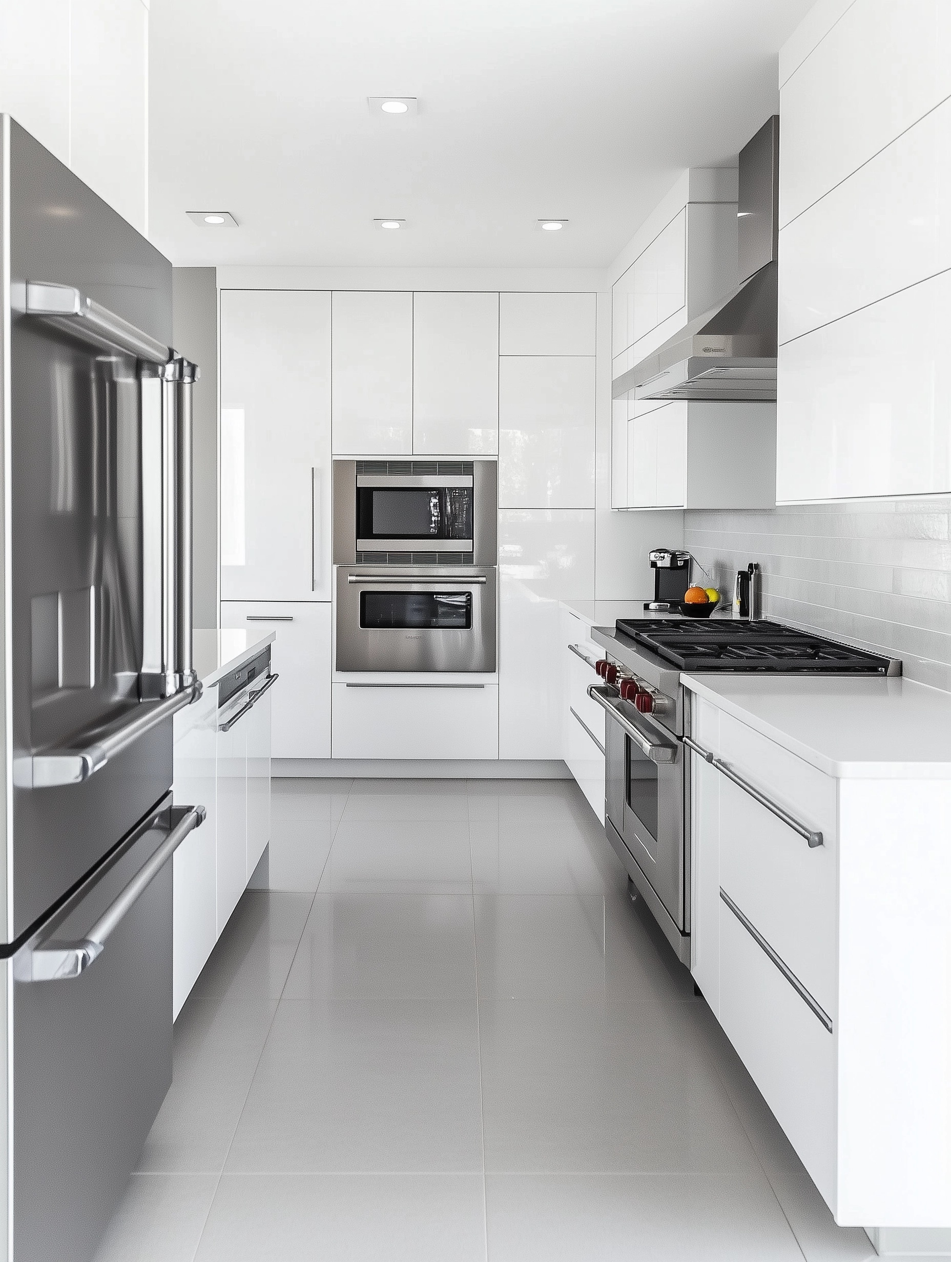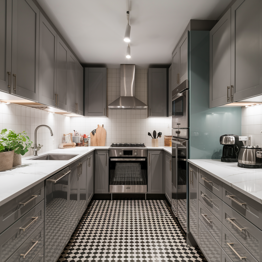 Choosing the perfect gray kitchen floor will enhance your entire design. You can choose between tiles, wood, and laminate, each one of them giving a different texture and look. Light gray floors can brighten space while dark gray floors add style. Make sure you select a flooring material that is enduring and low maintenance.