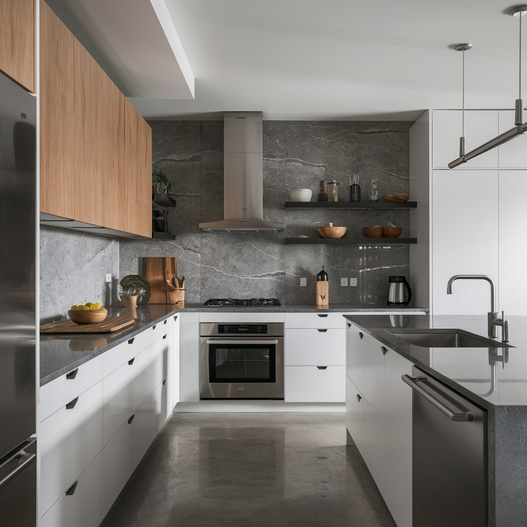 Your choice of the right shades among the gray to be used in your kitchen is one of the most important ones. Light grays will give a cheery and wide look, whereas dark grays will give depth and drama. Take into account the natural light in your room and the ambience you want your color palette to create in choosing your shade.