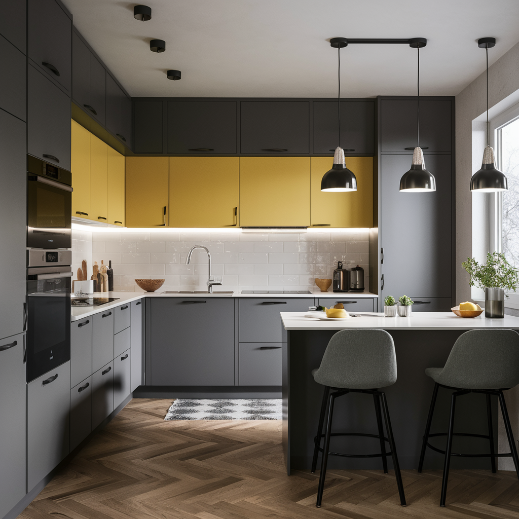 Combining gray with other colors can confer vibrancy and interest to a kitchen. Kitchen design ideas with color combos can be gray along with white, black, yellow, green, or wood tones. These combinations allow different degrees of moods and styles, from the sleek and modern to the warm and inviting.