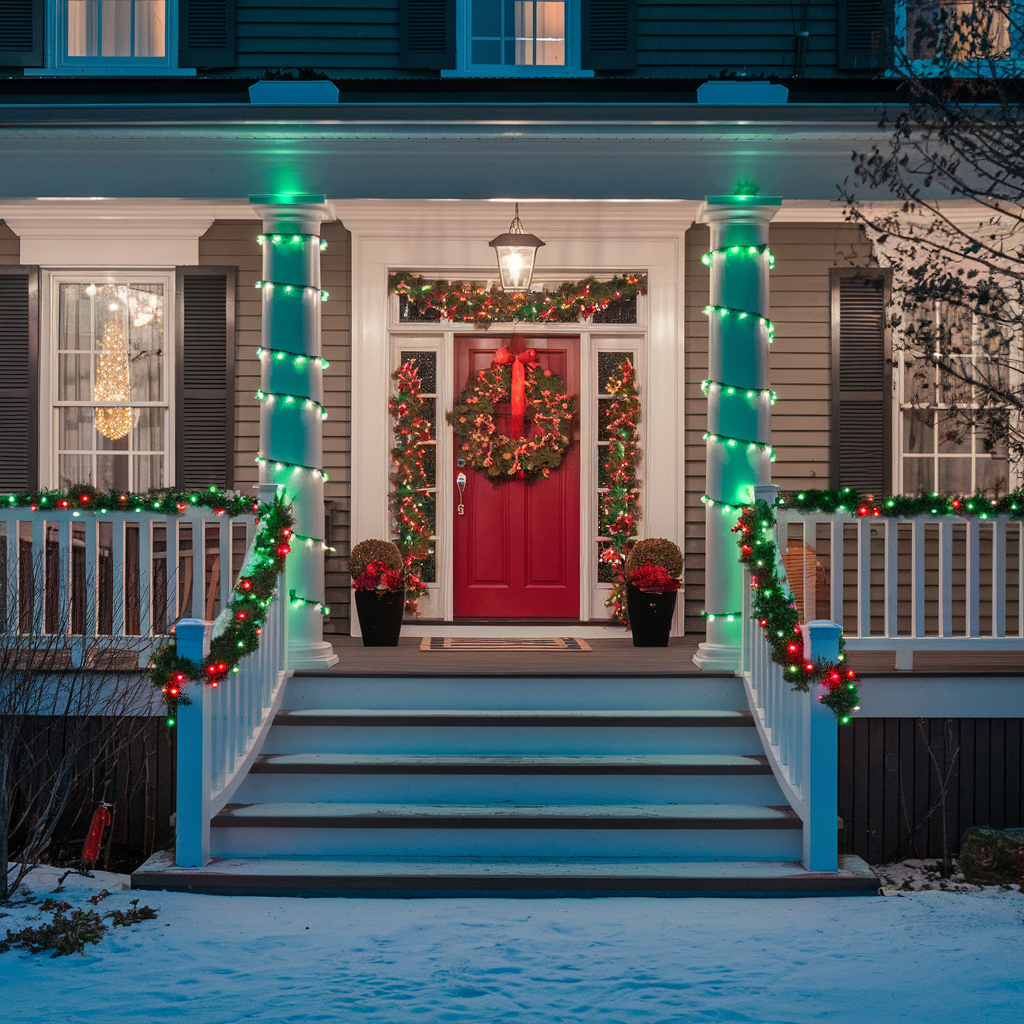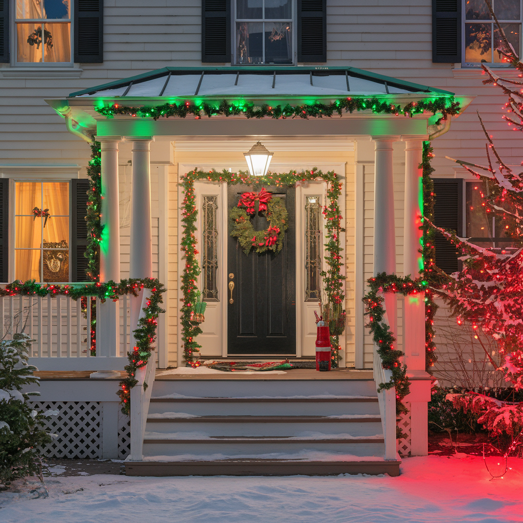Green and Red Lighting Ideas for a Charming Holiday Entrance