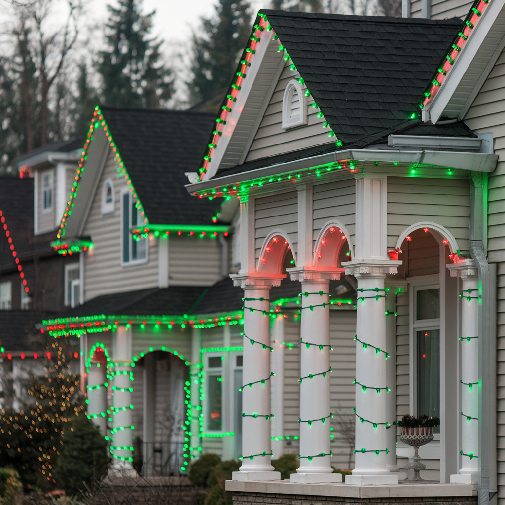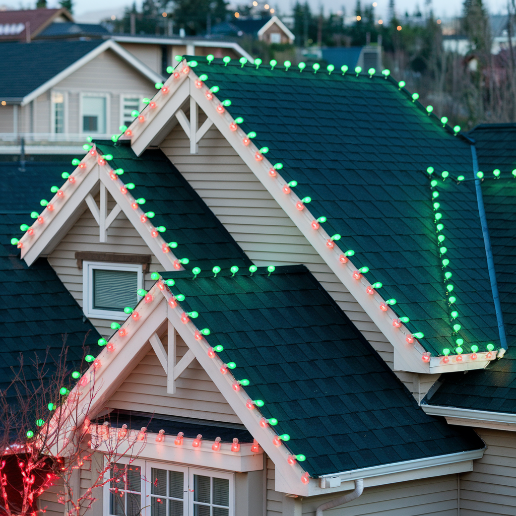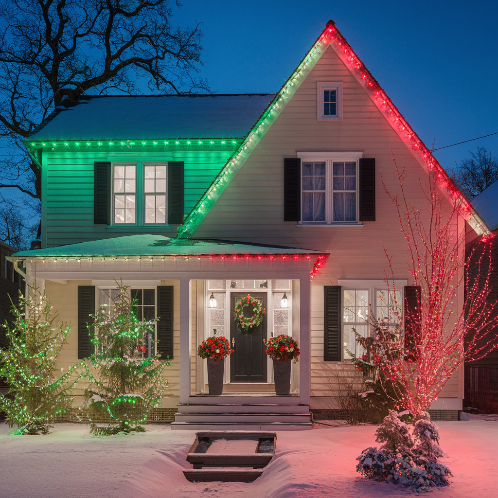 Using Green and Red Christmas Lights to Accentuate Your Roofline