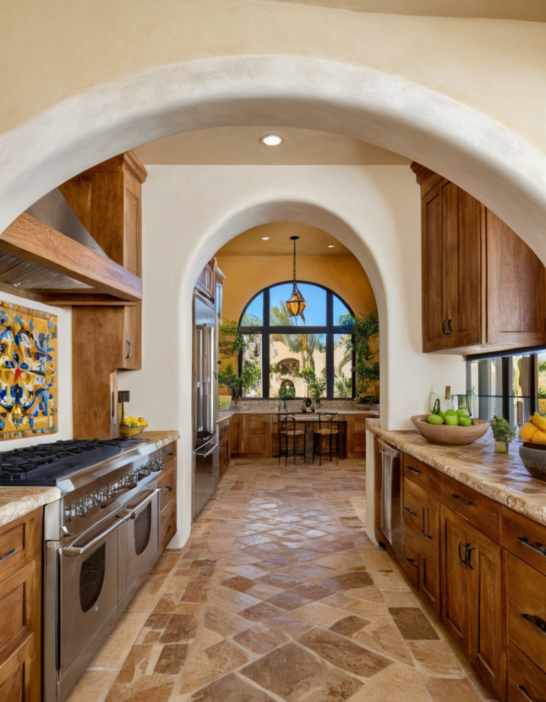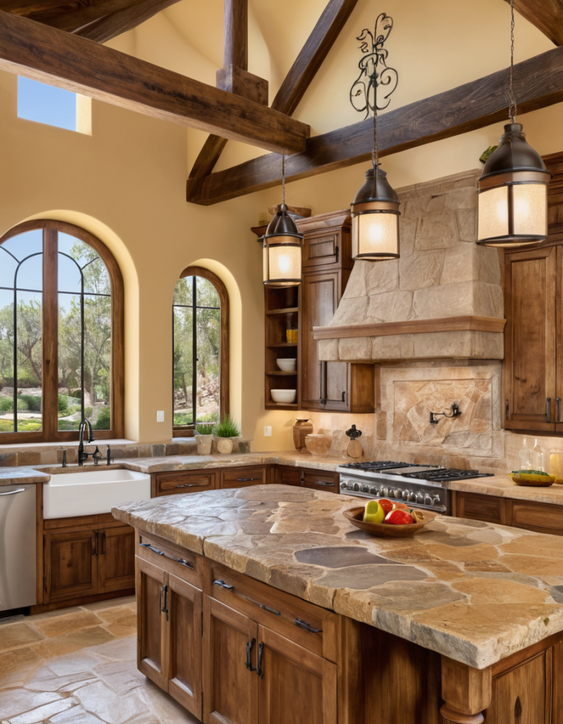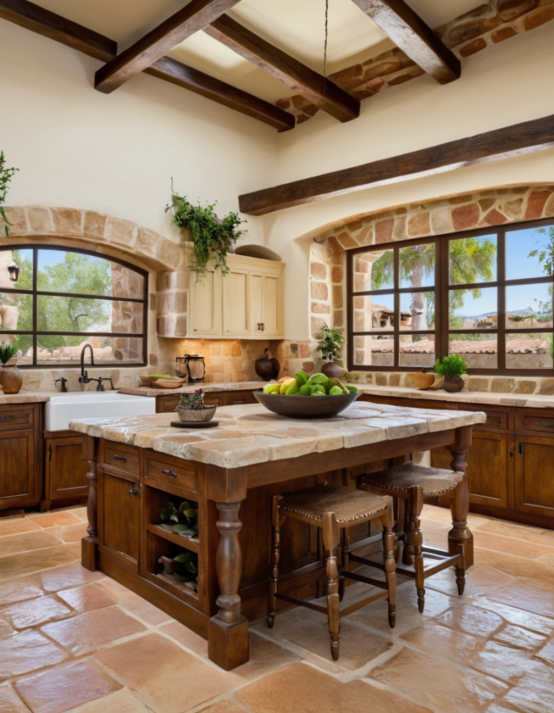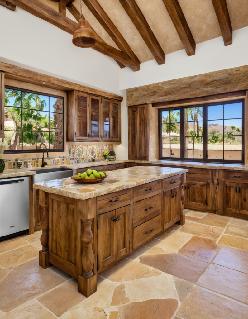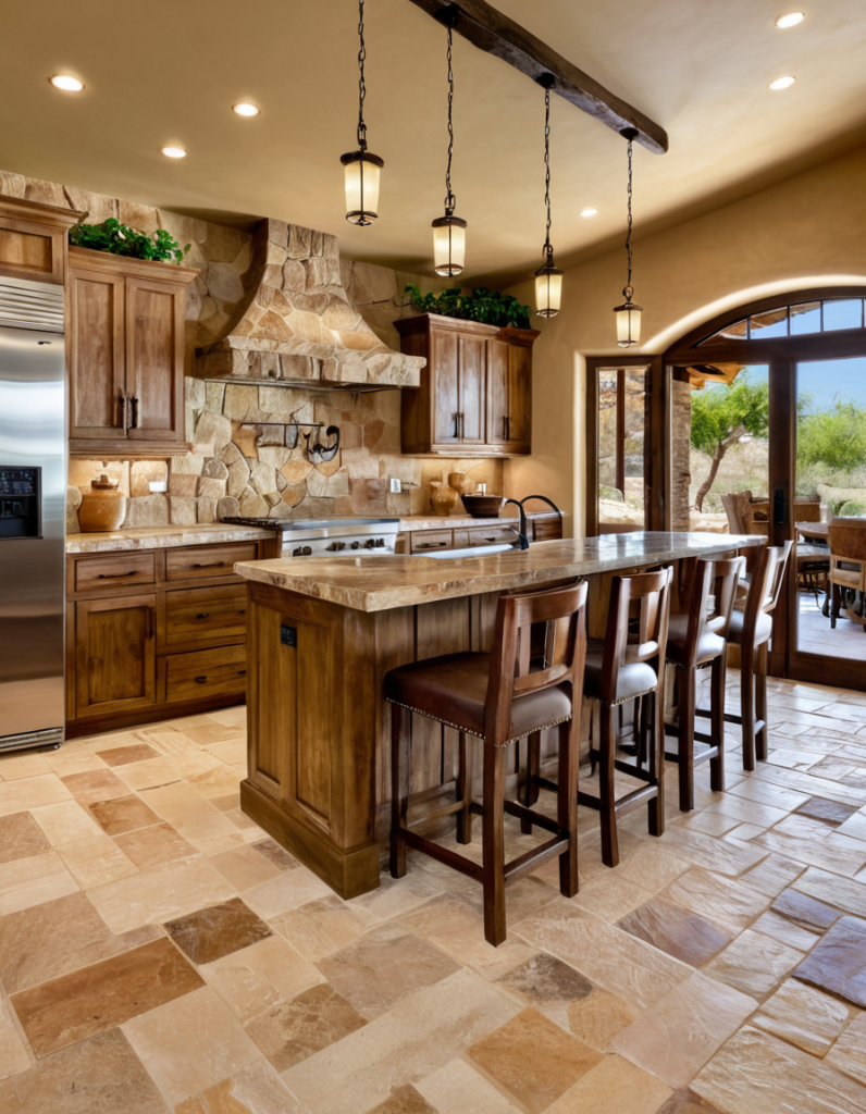 Stone Flooring for a Rustic Spanish Hacienda Kitchen