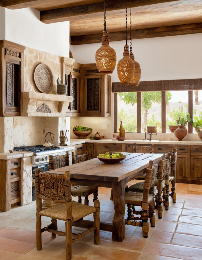 Through the use of accessories, one can integrate old-world charm into the kitchens. For example, consider the idea of implementing the following pieces: vintage copper cookware, hand-painted ceramics. The use of colorful and assorted pottery reflects the influence of the Mexican culture. A combination of various elements – iron and wood artifacts, lively and modern decor – produces a style that is both extraordinary and highly interesting at the same time.