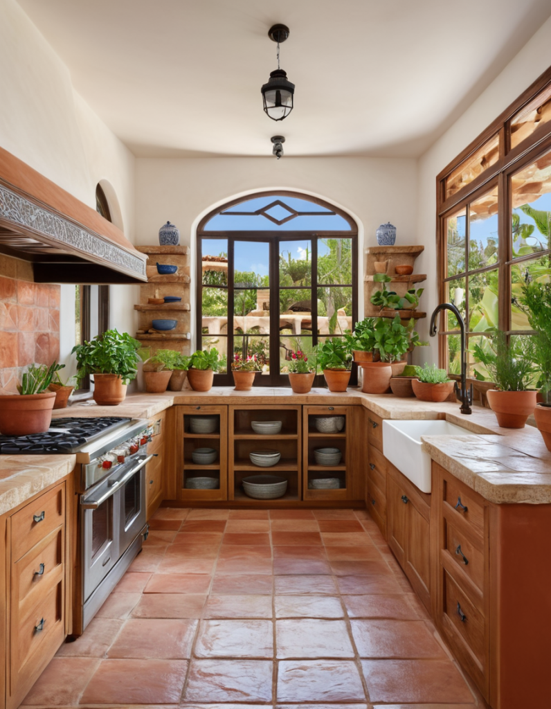 A Mexican garden is a mandatory feature of hacienda-style kitchens, and by doing this, you really capture the essence of the outdoors inside your kitchen. You can achieve this by creating a breezeway or a patio with the abundant green planting, flowering trees, and widespread terracotta plants that will give you an environment embracing the peacefulness of the countryside. You can also import the look of the Spanish garden inside by putting potted plants or herbs on windowsills and shelves. The affinity for the great outdoors induces an environment that seems rather natural and, hence, to a certain extent, the kitchen starts to be inculcated into the outdoor space.
