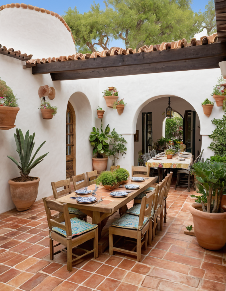 Provided that the decor of the whole area is hacienda-like is finished, it is possible to add to your kitchen a Spanish garden-influenced patio. The area would be a little space with natural beauties (wooden furniture and pots with plants), making your kitchen open more into nature. It is a very nice eatery during good weather/Fresh air. A reliable wooden table and strong iron chairs wait to be used. With the addition of color tiles or a mini water fountain, you can also transform it into a more genuine garden oasis whose peace and tranquility will be only a few steps away from your cooking area.