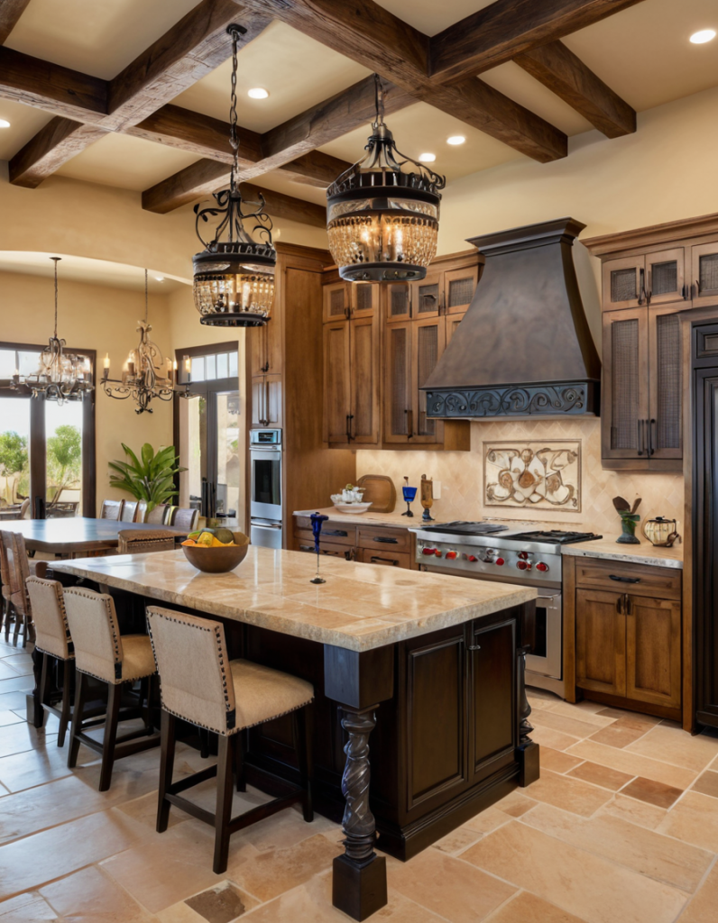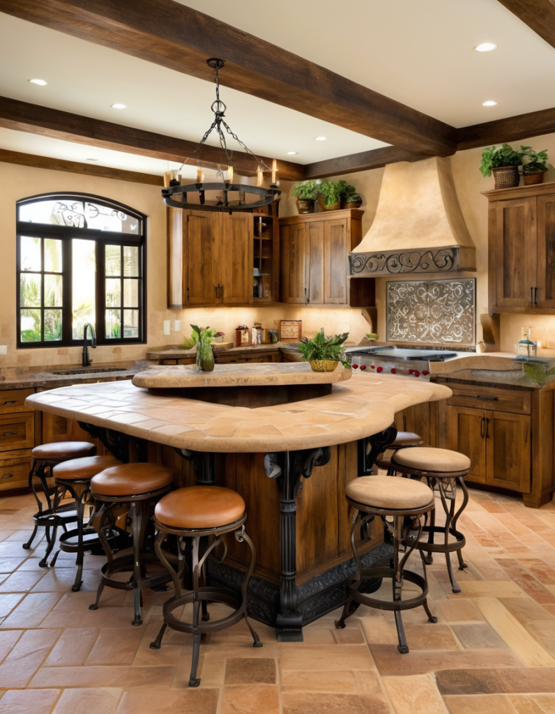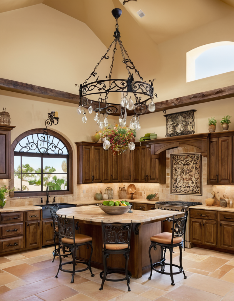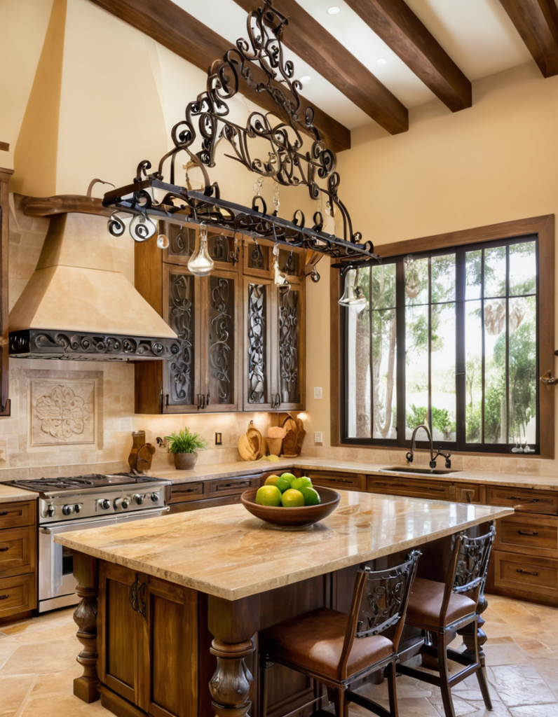 Wrought iron, which harkens back to early Spain, is deeply rooted in the magnificence that is the Spanish colonial design and is what lends a nostalgic rustic charm to the kitchens of haciendas. Be it a wrought-iron pot rack, a chandelier, or decorative shelving, these items create a sense of age and genuineness to the room. Mainly for the purpose of arming cabinets and lighting fixtures plus a similar intensity of a dining set even, as wrought iron can be used as part of the items. In union with the warm of wood and stone, the decor made of wrought iron is both traditional and contemporary, which is quite an inspiring effect.