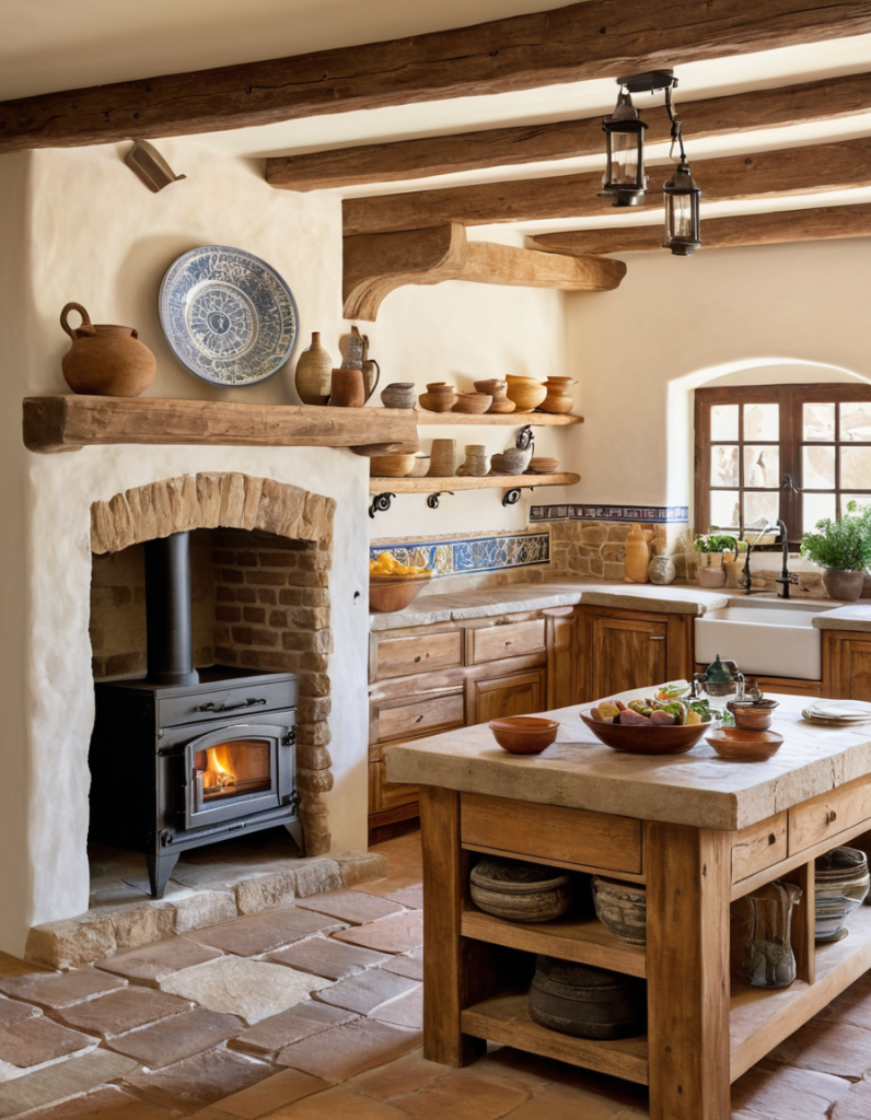 By Adding a Fireplace or Hearth into the Kitchen of a Hacienda