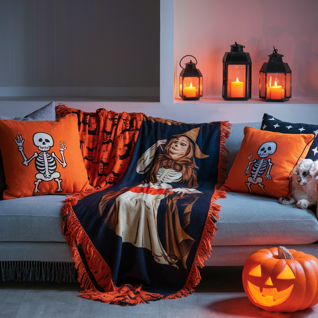 Decorating with Halloween-Themed Throw Pillows and Blankets
