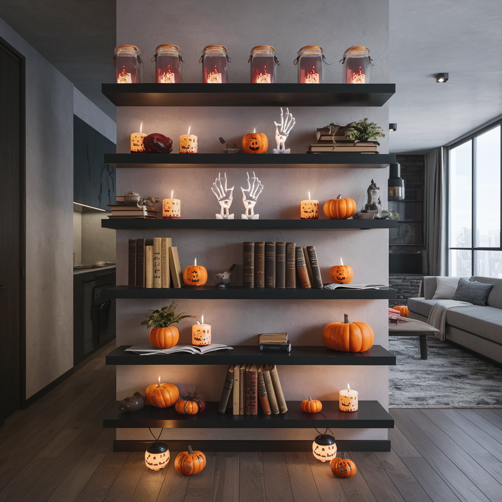 Using Floating Shelves for Halloween Decor in Apartments