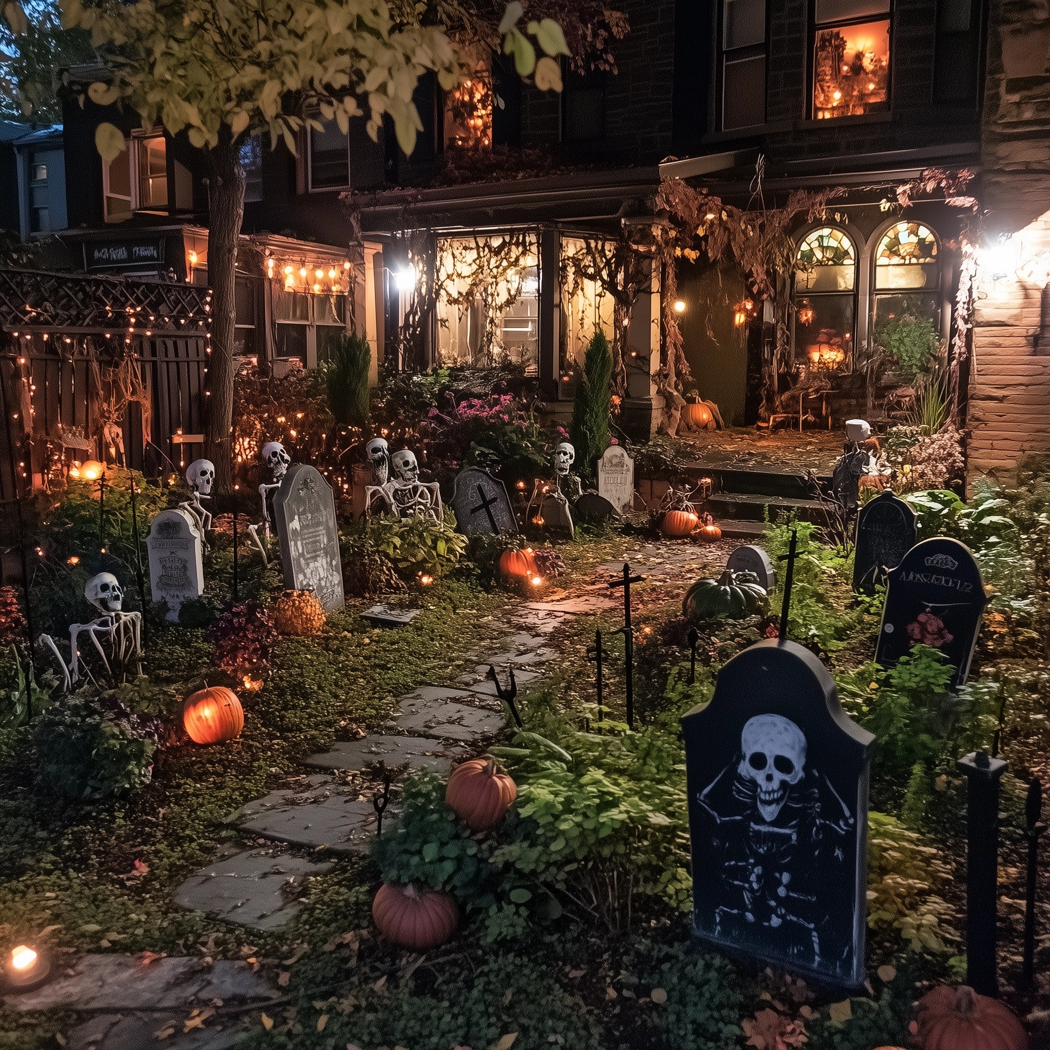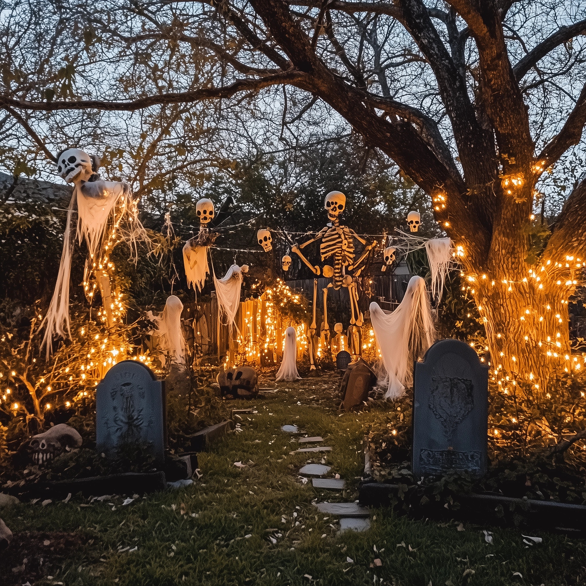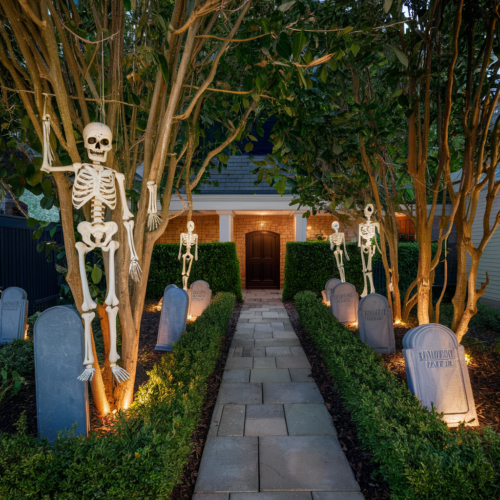 Environmentally appropriate and secure lighting is the fundamental prerequisite for creating a mystic and safe Halloween yard. Make the decoration a prominent place for lights to be focused in the house; for example, lights can hang/dispose alongside tombstones, skeletons, cauldrons. Pathway lights can make the whole yard safe and sound, while string lights or lanterns give off a welcoming glow. As a safety measure, make sure that the outdoor lighting is well grounded and is not causing any slipping hazards.