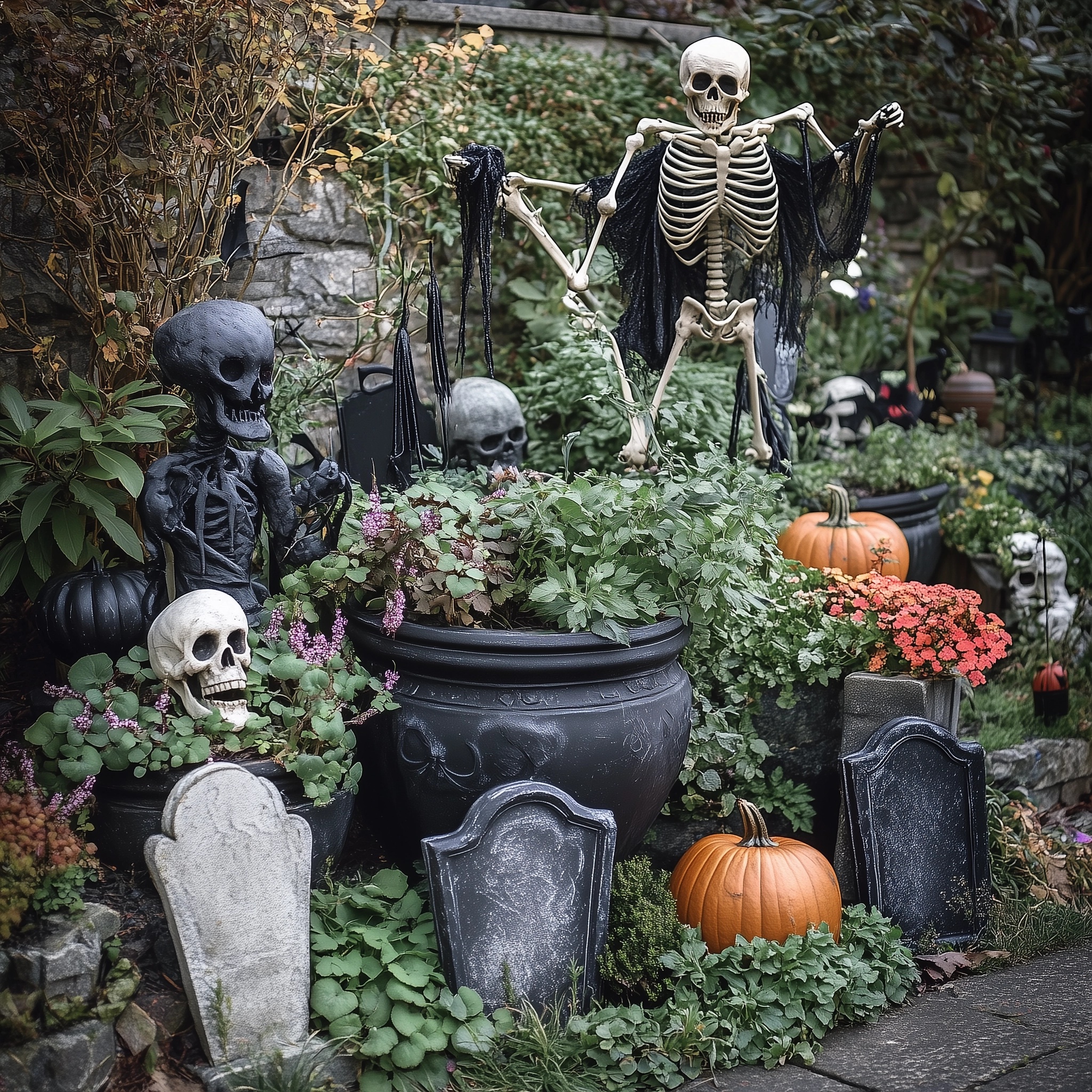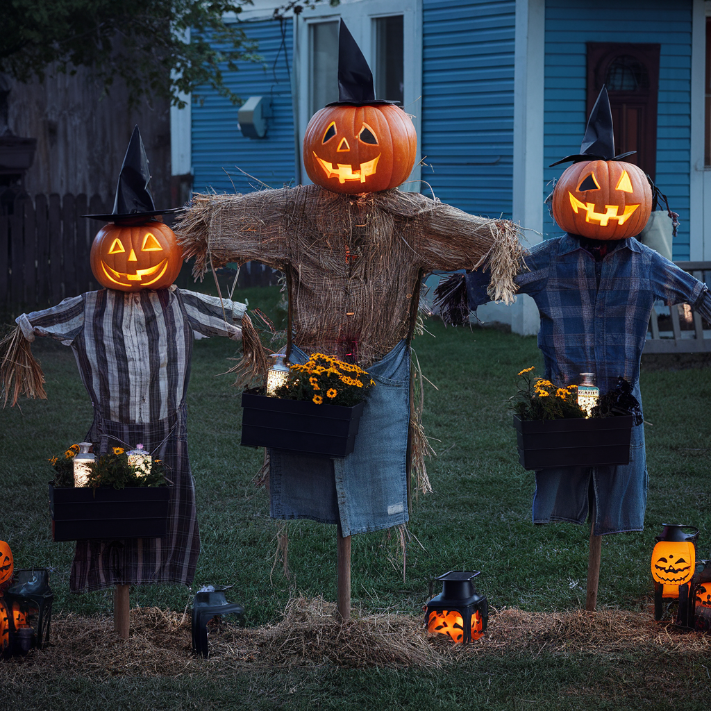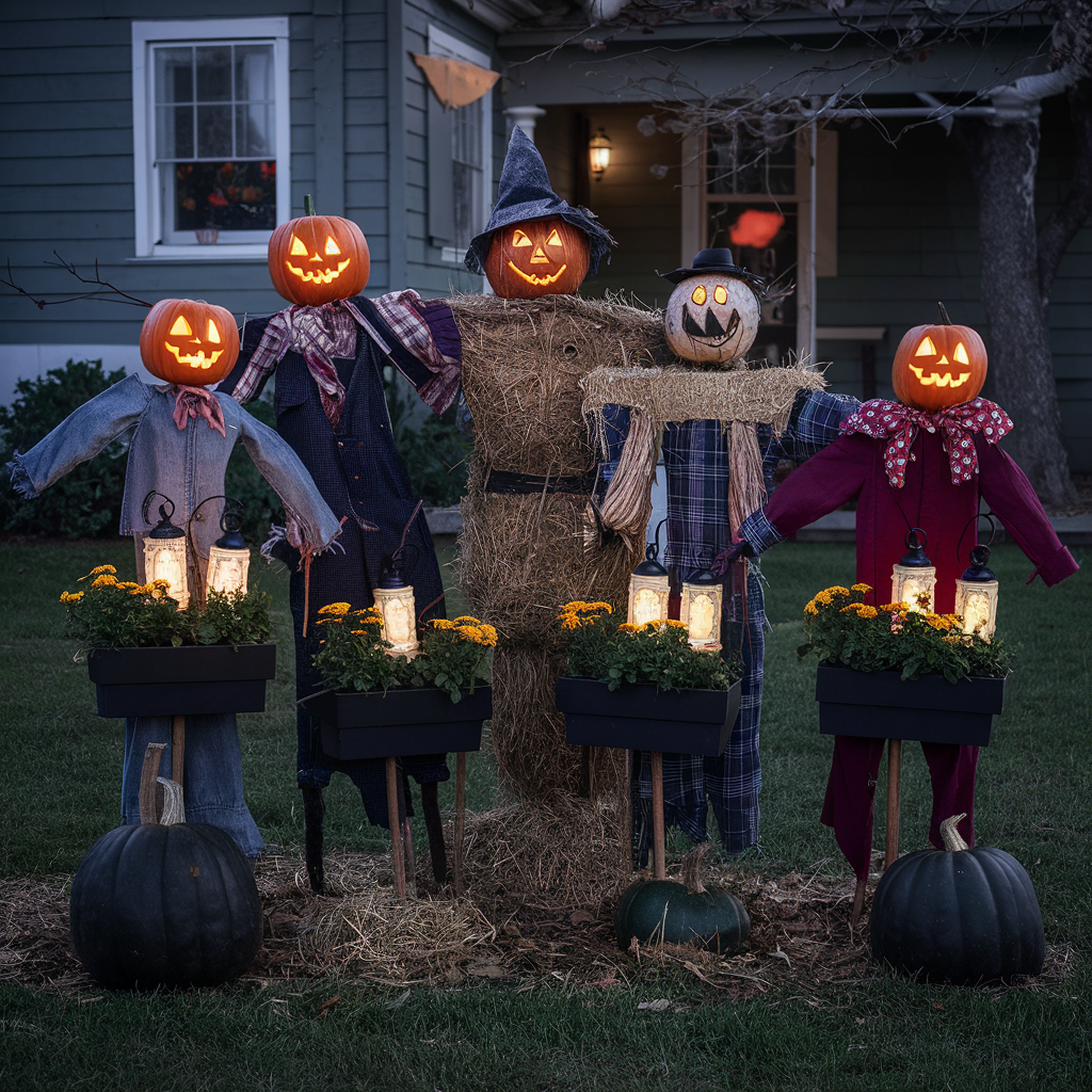 Scarecrows are a versatile decoration that can be easily adapted for Halloween. Create creepy scarecrows using old clothes stuffed with hay, topped with sinister pumpkin heads or skull masks. Position them strategically around your yard, perhaps holding a planter filled with black flowers or a lantern glowing with eerie light. You can also add motion sensors so the scarecrows move or make sounds when someone walks by.