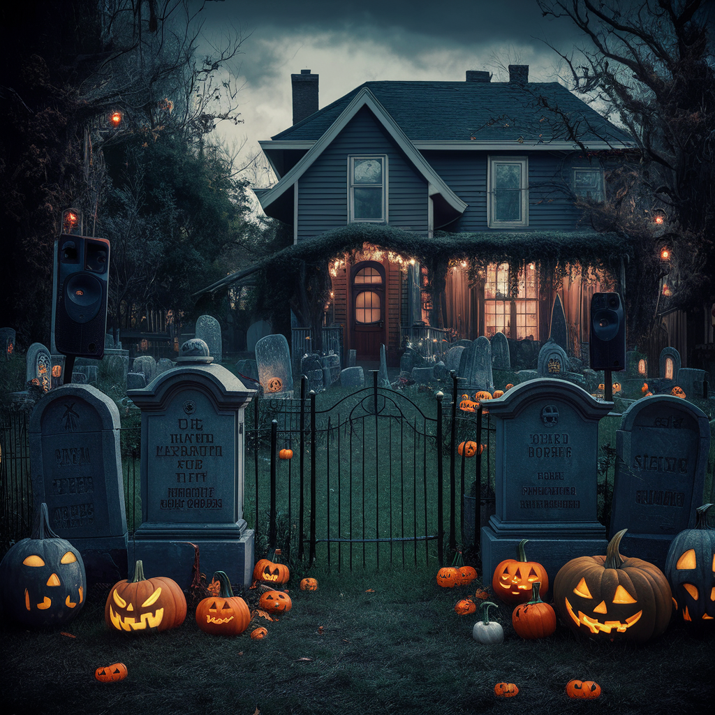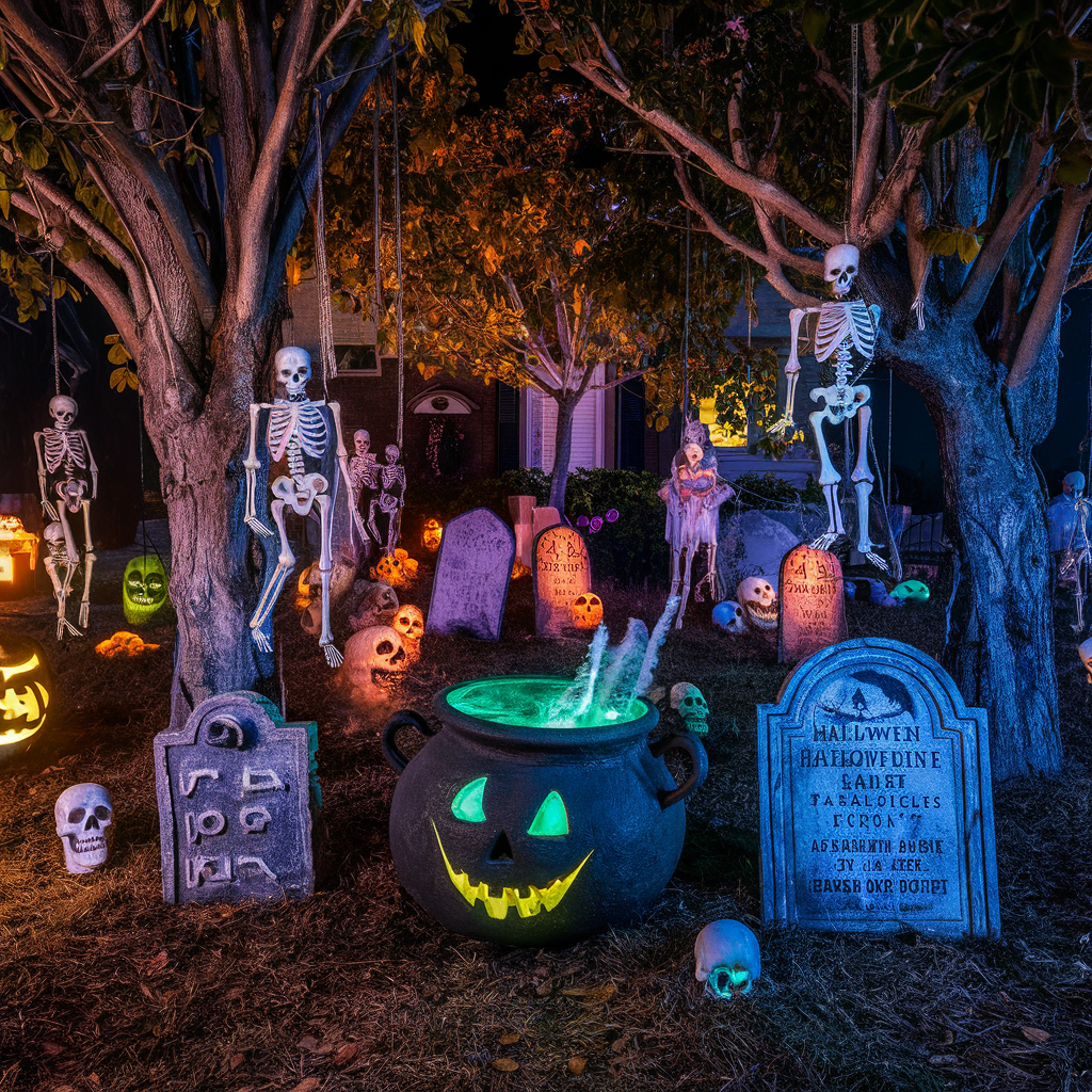 Sound is a steadfast component through which Halloween moods are set. You could install a speaker in your garden to play chilling background music like irregular winds, distant cries, or ghostly whispers. Then you can also put some specific point effects near the tombstone and the witch house, such as swinging doors, or bubbling cauldron. The tandem of sound and visual yard decorations will keep your guests in full immersion of a spooky experience.