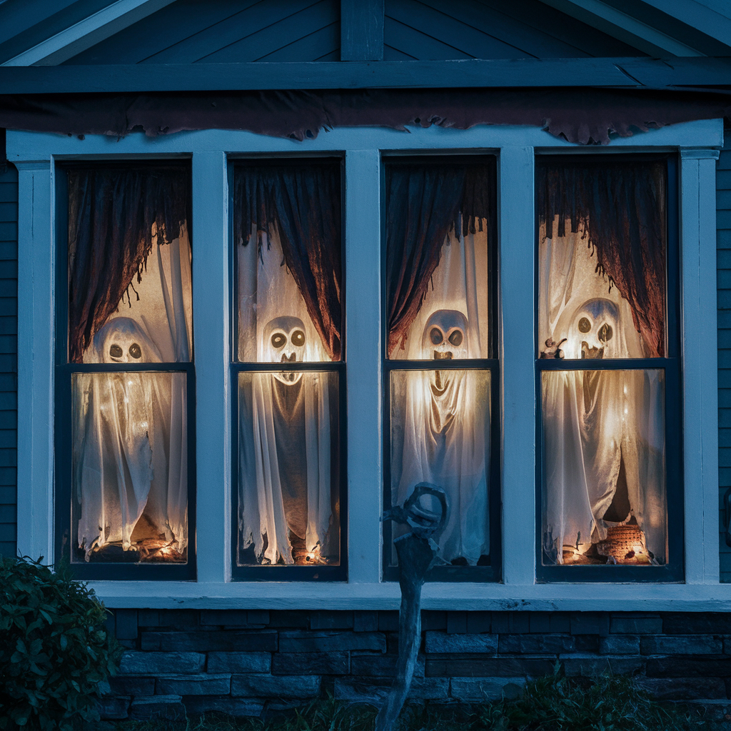 If you want to make your Halloween decorations look spookier than other, windows are a great place to make this happen. Decorating a window with various materials such as window clings, silhouettes and flickering lights will create a near-hall feel that no other decoration can emulate. Make the entrance of your house look famished by hanging up torn curtains and guiding the ghosting eyes through the place. Just pop a few skeletons or ghostly figures out from the windows to give those passing by a nasty jolt.