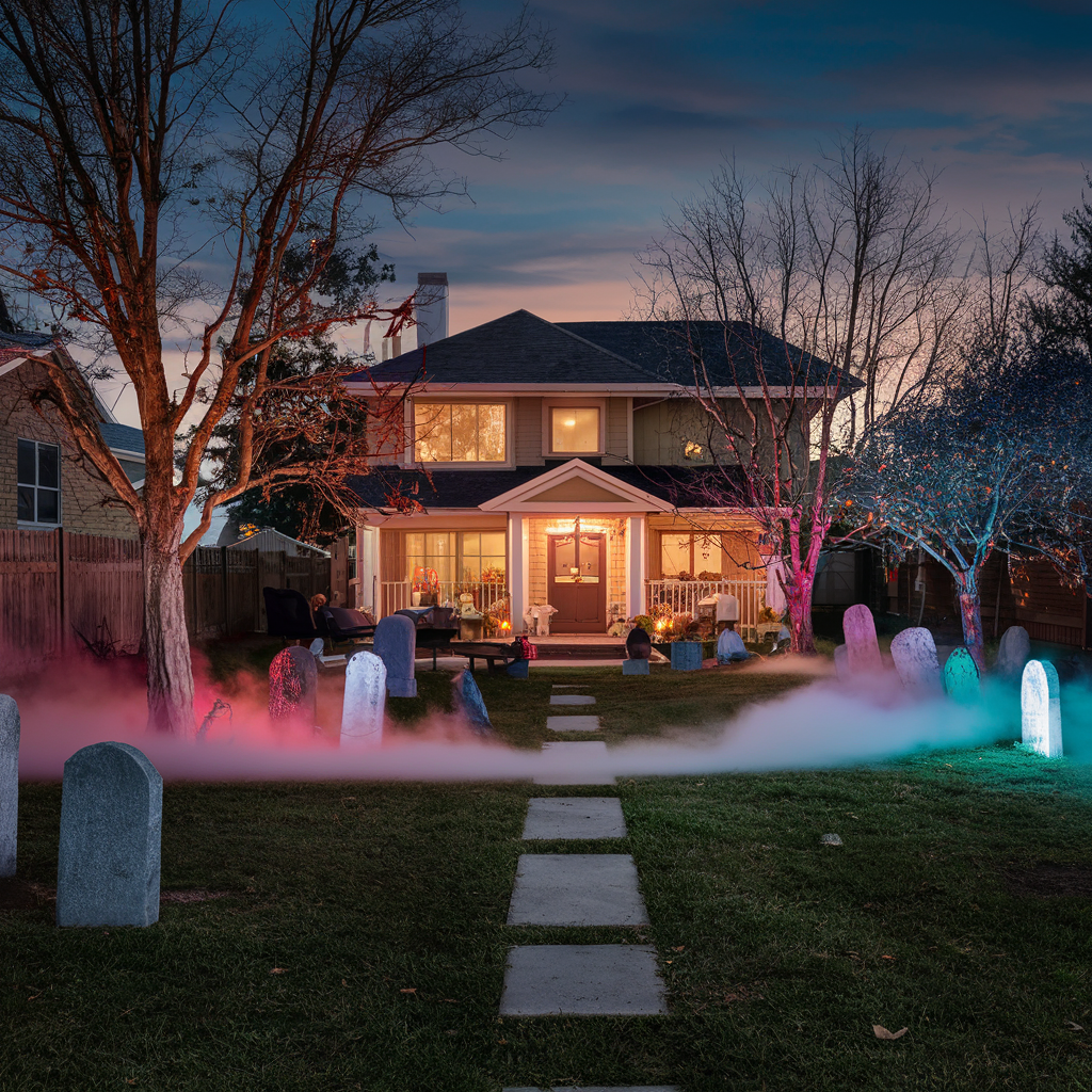 A fog machine stands out as one of the best approaches to setting up an eerie space in the yard. Put the fog machine in the vicinity of the trees, gravestones, or witch house to make a mysterious vapour that covers the ground. The fog will make your yard decorations more impressive, thus attaining greater mastery, by making them seem more enigmatic and thrilling. Use the fog at the same time as the multi-colored lights to create conflicts, for instance, ghost lights or frightful mist.