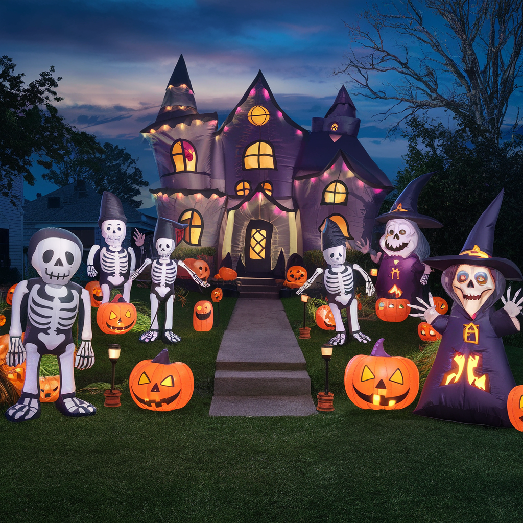 It is a hit with children to see lawn inflatables out in the air but does not take any effort to decorate the yard. Pick out the inflatables that complement or match the theme you chose, such as a giant skeleton, an old mansion, or a haunted castle. Inflating them in your yard framing the entrance or porch can be an exciting plan. These inflatables can be vinyl or made from lighter fabrics and be turned constantly to give the decor an ever-changing feel.