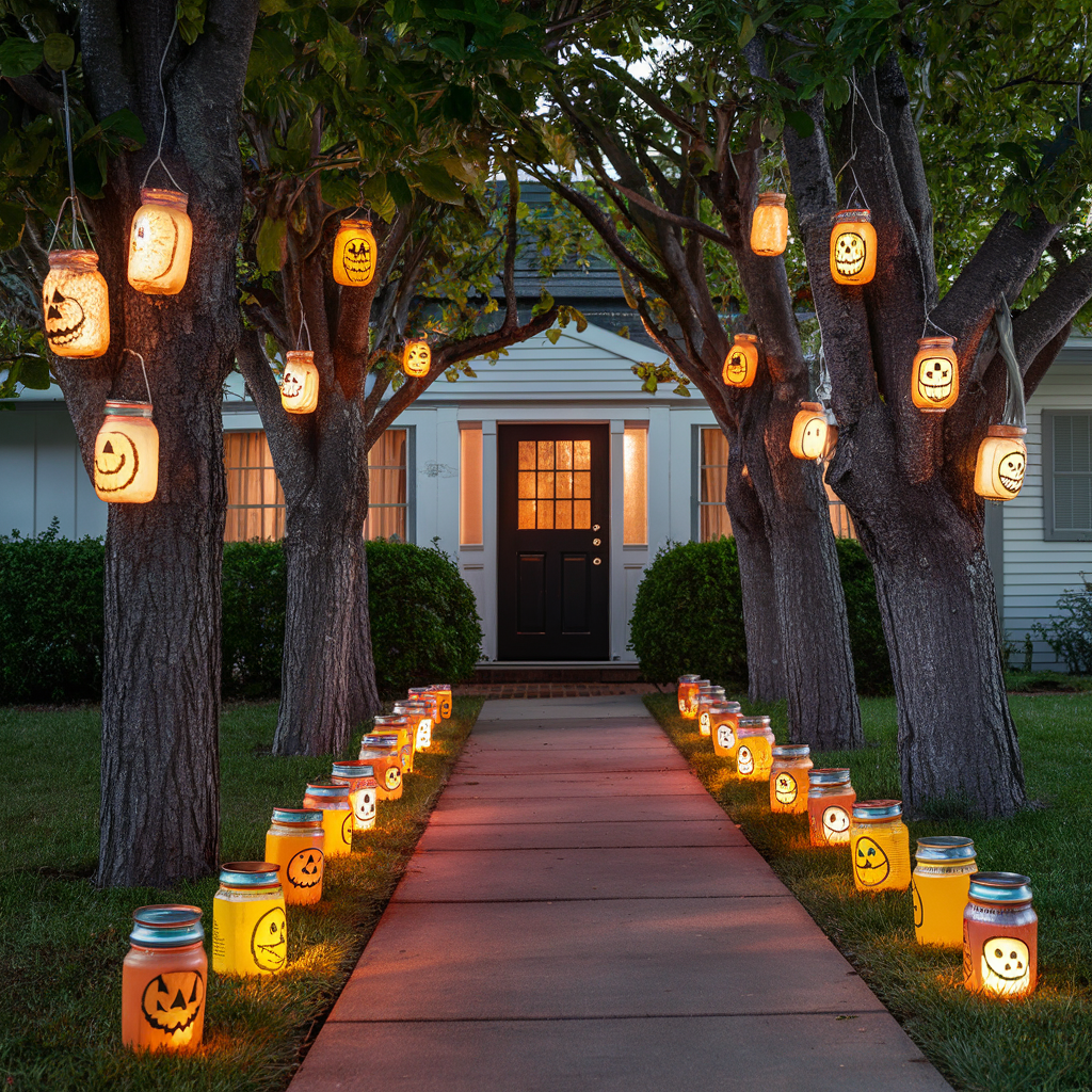 Making your own Halloween lanterns is a simple yet enjoyable process to elevate your outdoor lighting to a more personalized level. You can get creative and make your own lanterns out of mason jars, old cans, or other glass bottles that you have the lantern-making talents to make the theme that you prefer. You can paint them with a scary picture like a skeleton, jack-o’-lantern faces, or black paper with ghostly shapes of trees in the background. You can put inside LED candles or fairy lights to make your yard visible and protect your guests.