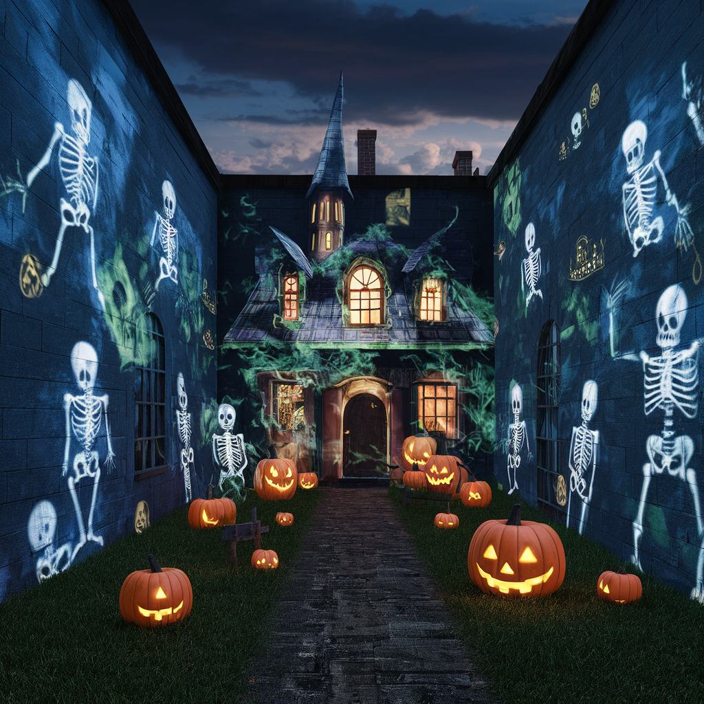 Outdoor projections can add a dynamic and haunting element to your Halloween display. Project ghostly apparitions, floating skeletons, or eerie witch house scenes onto the walls of your home or the side of your trees. The moving images, combined with sound effects, will create a spine-chilling experience for your visitors. This easy addition to your Halloween decor can transform your entire yard into a ghostly theater, making it one of the most memorable on the block.