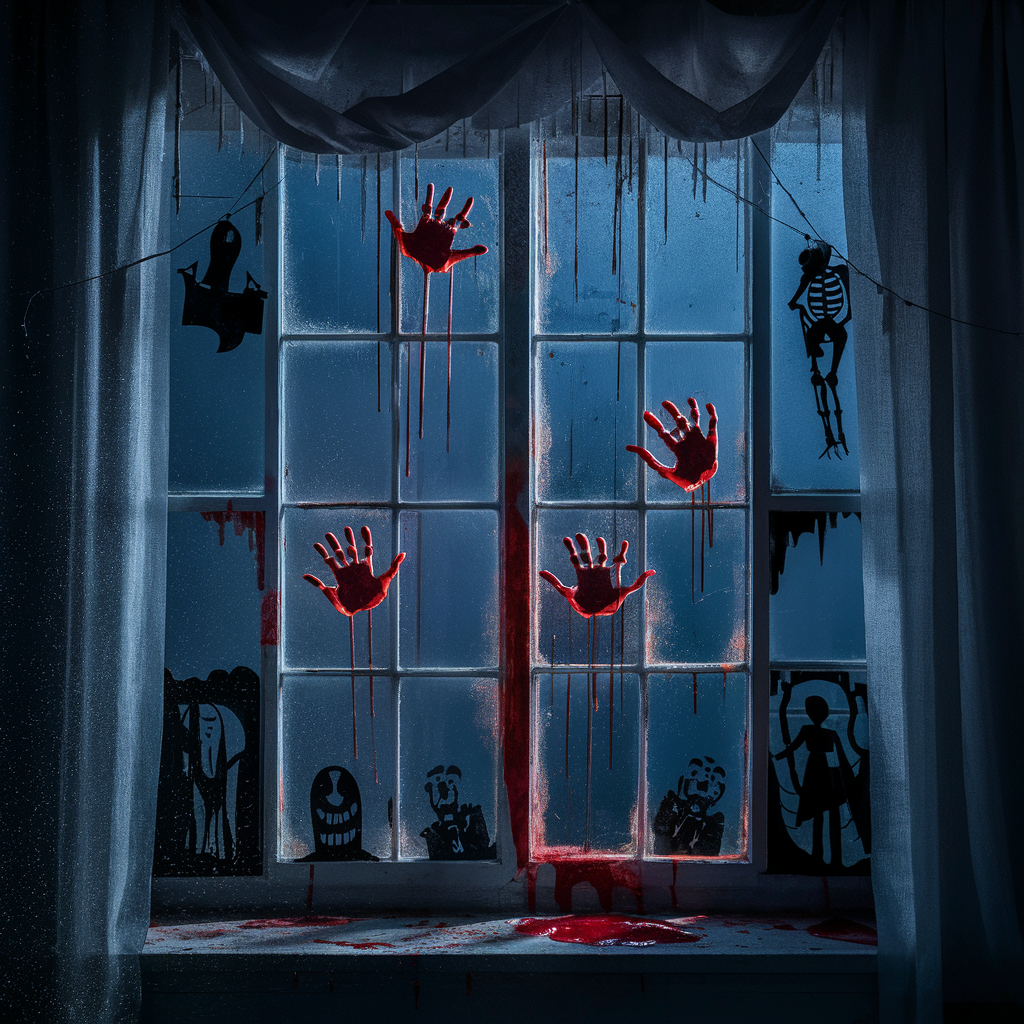 Making artificial blood a part of your Halloween window display will attract people’s attention because it is a unique and, at the same time, terrifying feature. Envision a haunted house style or get ‘bloody’ with drips, splatters, and handprints on the windows for a thriller. This straightforward DIY method is ideal for people who wish to make a serious difference with little effort. To enhance the general design, add a few silhouette cutouts of disturbing ghosts or shadows for a more realistic scheme.