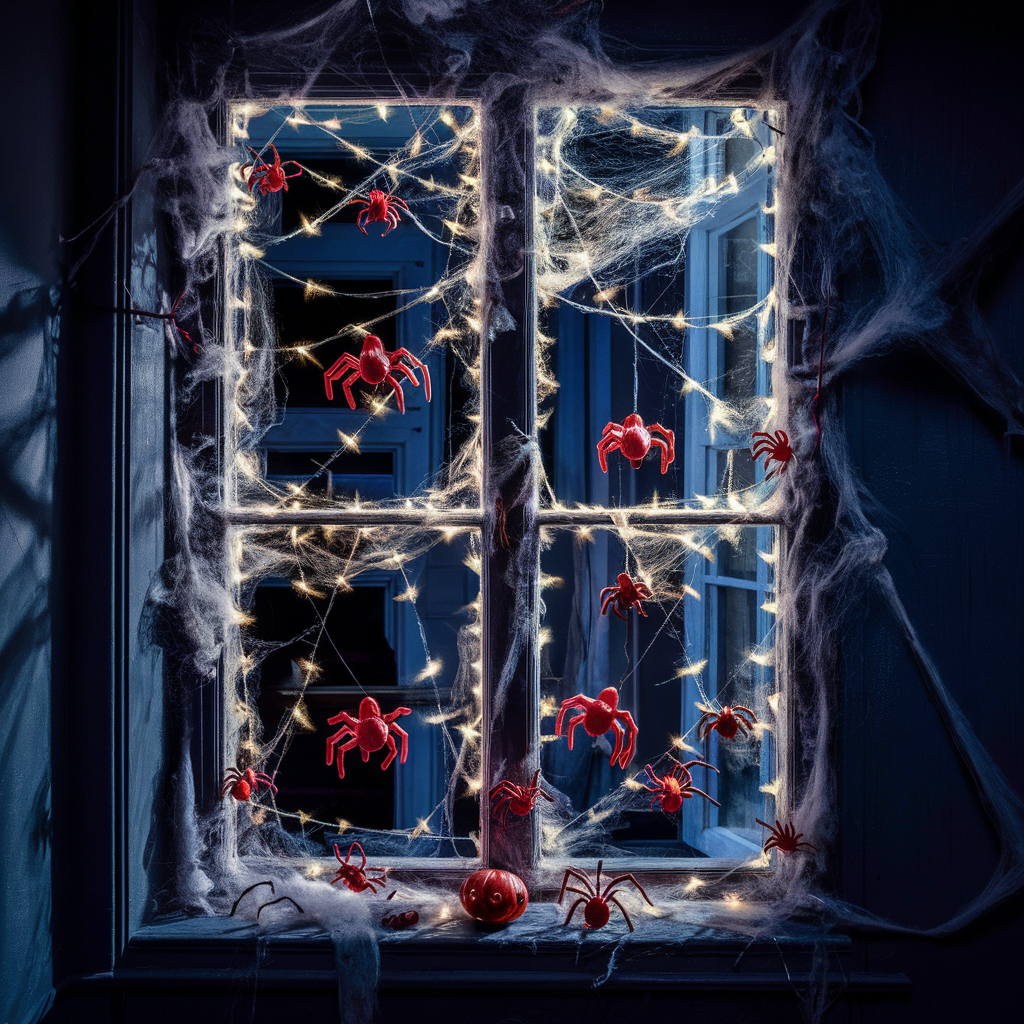Ghosts are a staple of Halloween, and by adding them to your window decor you can conjure up a truly spine-chilling experience. You may apply cut-out silhouettes, ghost designs that you can print, or the floating ghost figures which are usually created using white fabric or cheesecloth. Make the ghosts get casted in your mind by using backlights of LED lights or by using candles to make them look like they are glowing or floating in the air. The decoration idea is fundamentally simple and yet the effect is truly magnificent, making it an ideal choice for a spooky scene that will haunt anyone who sees it.