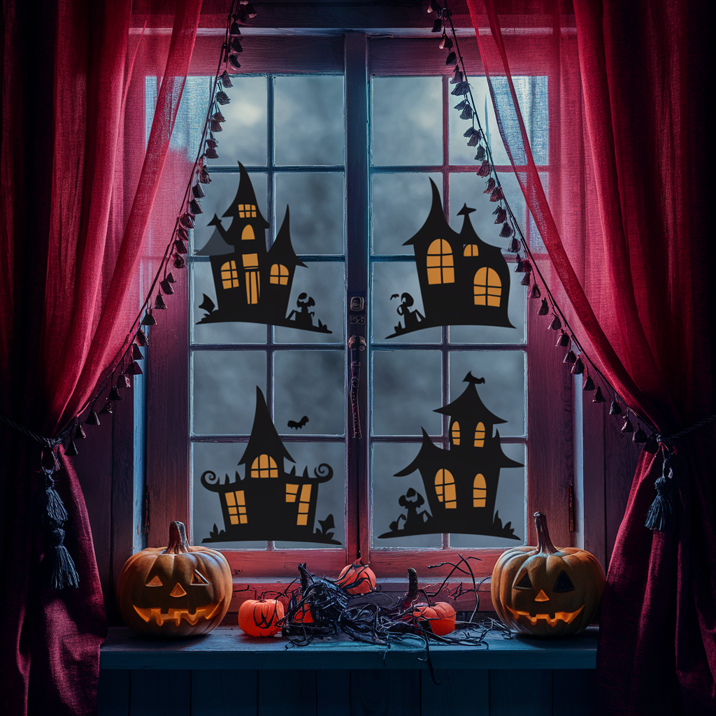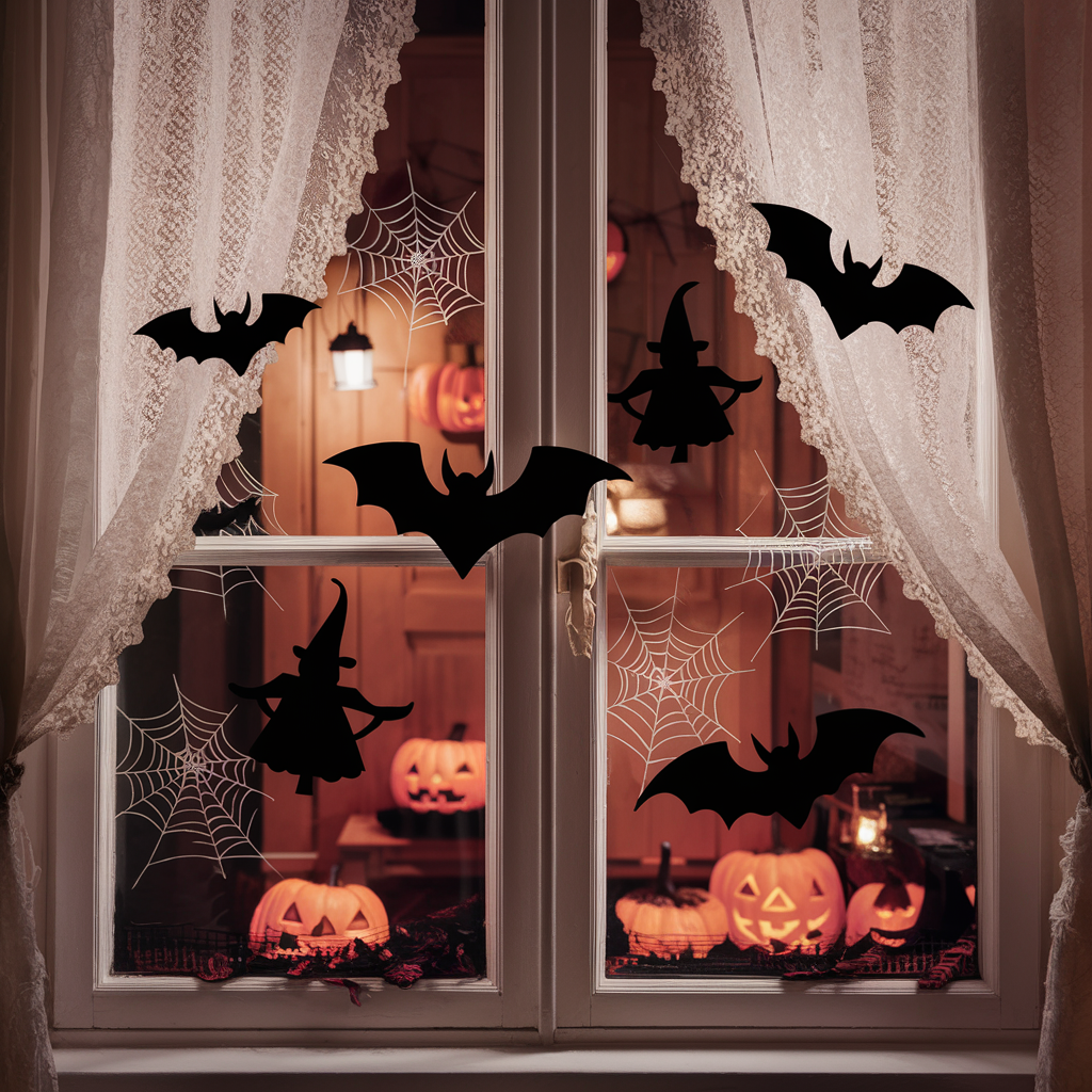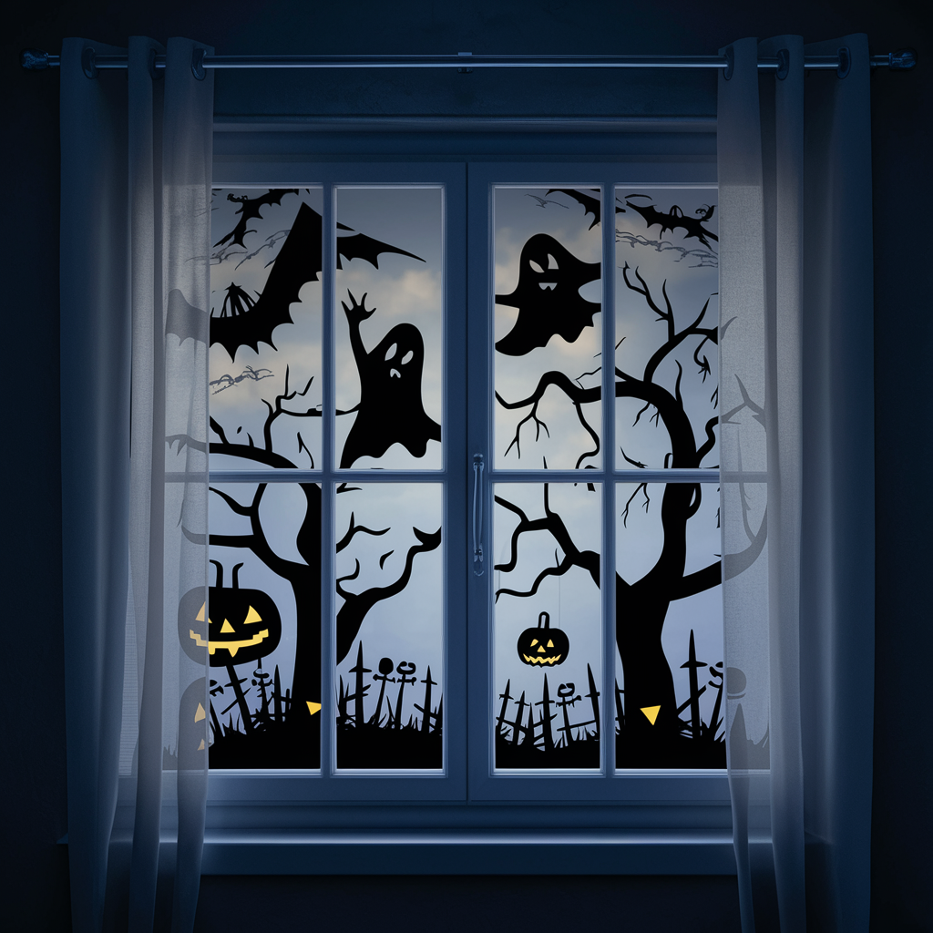 Window clings at Halloween time are taken up a notch with the use of decals, which can be more intricate and long-term in their design. They come in various interesting shapes and can make any window into a lush forest, deserted graveyard, or even a haunted house. They are effortless to put on and take off; hence, they are a quick and reliable solution for people who wanted to have a simple home decor that does not require any permanent changes. You can pair them with some indoor decor such as blinking lanterns and vintage Halloween figurines to complete the look.