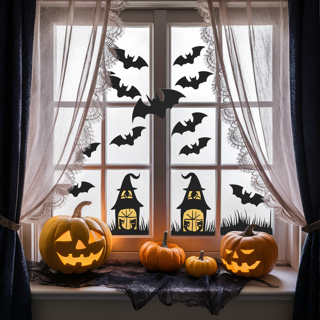 If you’re a group that doesn’t want to spend money and enjoys having a craft project, then Halloween window DIY is the way forward. You have the innovation, just as much as creativity, you can not only recognize but even make your own distinctive spook Halloween decorations. Cri-cut machines can be used to cut out these shapes such as bats, ghosts, or witches, which can then simply be attached to the windows. This crafting exercise is cheap and fun for all the family so there is no better way than inventing the decorations than shopping. Further efficient and affordable influences include those uncostly items like Spider webs available at Dollar Tree stores or black knit lace.
