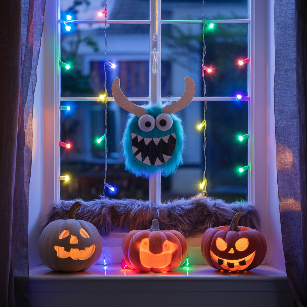 A monster-themed window decoration is an amusing way to conjure playfulness and fearfulness in your Halloween home. Bright-colored cutouts, window clings, or time-lapse film projections can be used for children’s friendly monsters. Personalize aliens by the eye and add a little scaryness by painting razor teeth and adding fur. This theme suits the classroom, plus scenarios that involve young children, such as those at preschool, not to forget those who live in homes with little children. It is both an exciting and horrifying theme. To give the monsters additional flair, use colorful lights or glow-in-the-dark devices on them.