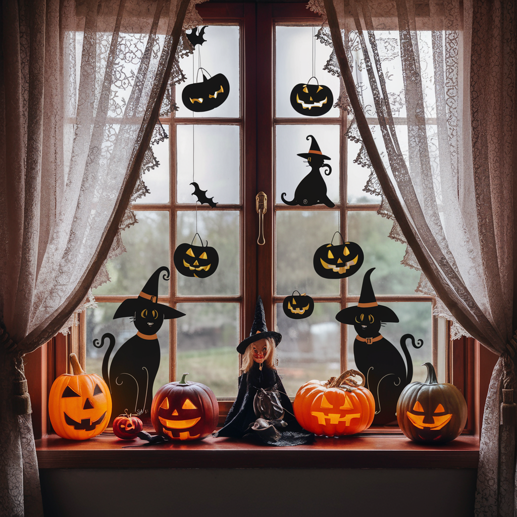 Those who adore Halloween’s aura in the good old days might want to use vintage window decorations. Bring in the usual suspects like the black cat, witch, and jack-o’-lantern, all in a style similar to the Halloween postcards of the early 20th century. It is possible to cheapest vintage designs or to find them in antique shops. Match these with washed lace curtains or vintage fabrics to end the topic. This old-fashioned Halloween decor approach will take you and your guests back in time, thus your Halloween celebrations will be more reminiscent of what it was like in the past.