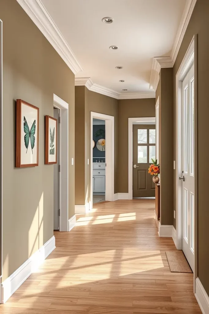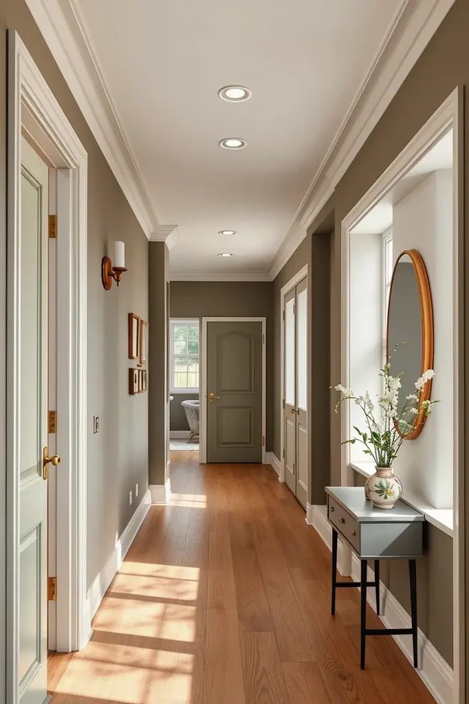 I have personally noticed that painting a hallway can make the room look totally different. In the Benjamin Moore 2025 color outlook, soft earth tones and neutral chalky colors are popular since they offer peace and ease with decorating.