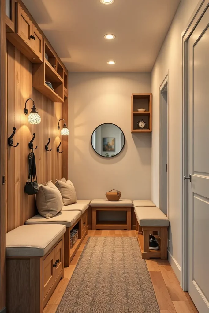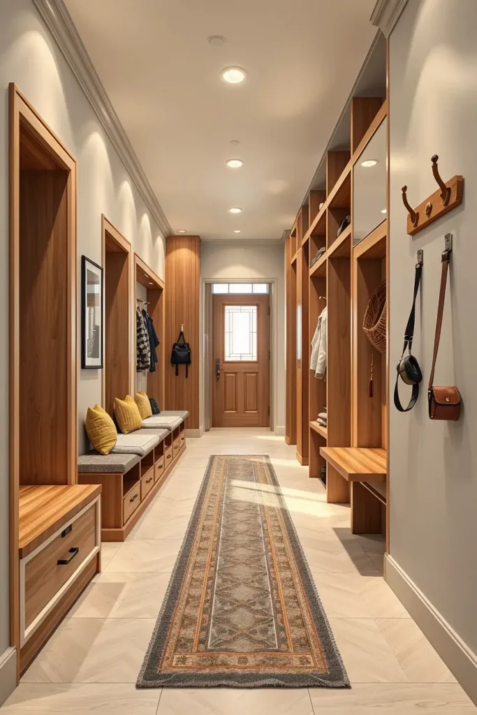 Adding a runner rug in an appropriate shade, some wall sconces for calm lighting and a mirror or artwork above the bench could make the section feel even better. Including such features would give it an attractive appearance, more balance and a practical family vibe.