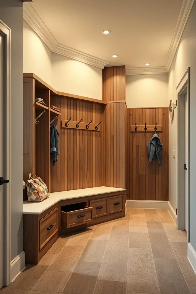 Another idea is to add hooks, picture rails or floating shelves into the paneling for a trendy way to use your space.