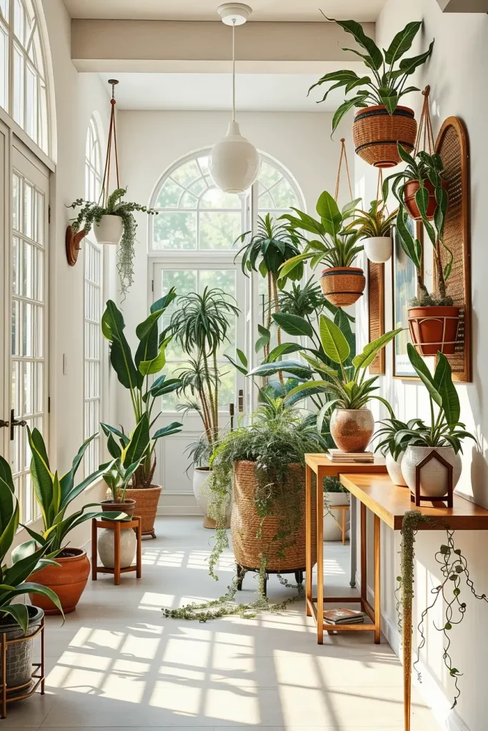 Because they thrive with little attention and look nice going up the wall, I tend to put snake plants or pothos in my hallways. When combined with ceramic or rattan pots, these pieces give texture and some soft colors to your space. For larger areas, I prefer to use a slender console filled with trailing ivy or a few small succulents to achieve a multi-textured appearance without making things overwhelming.