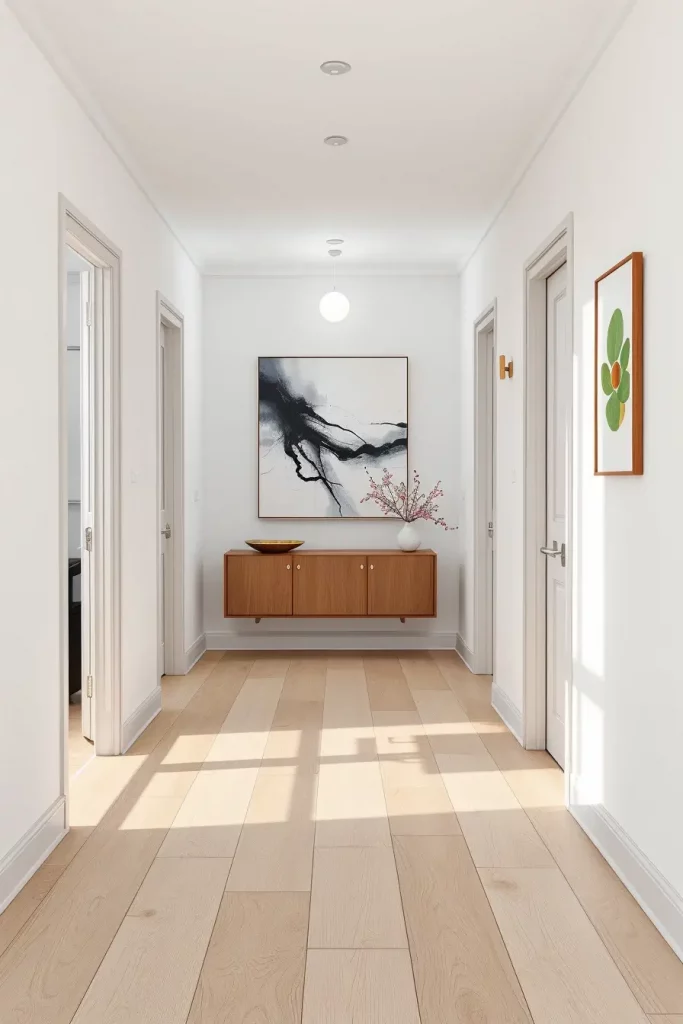 I’d go one step further by rotating the decorations; this helps the corridor feel new and creative no matter the season or your mood.