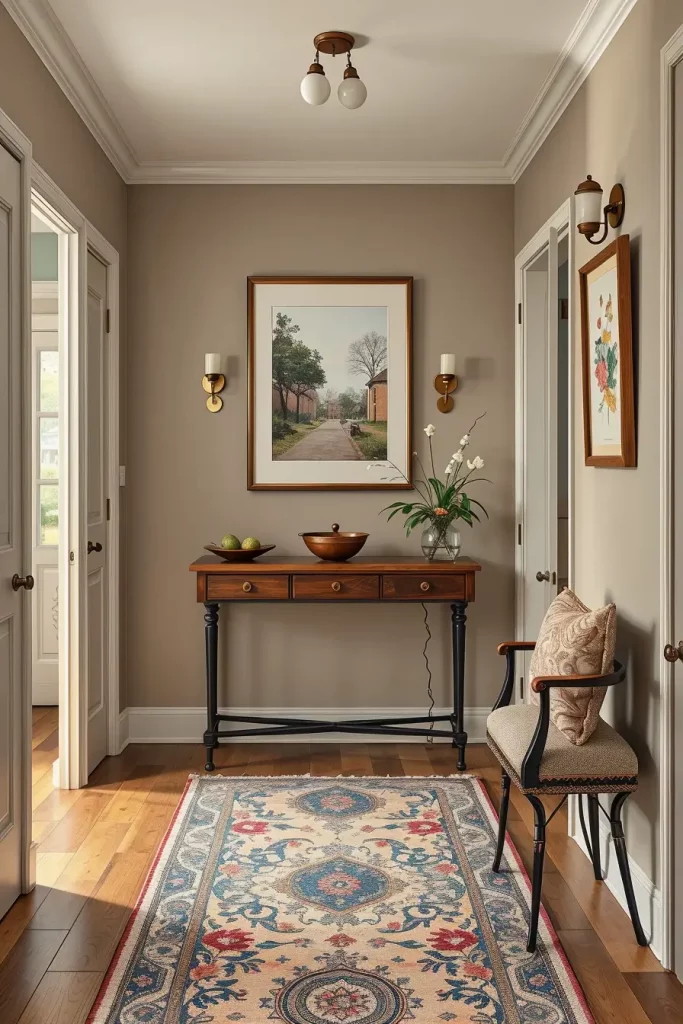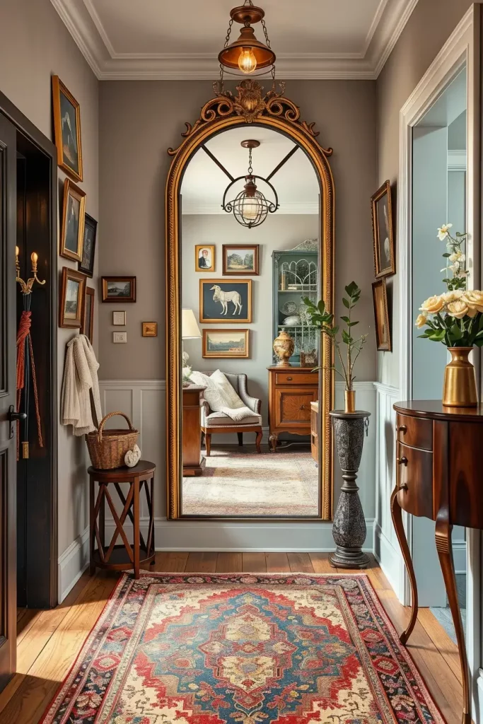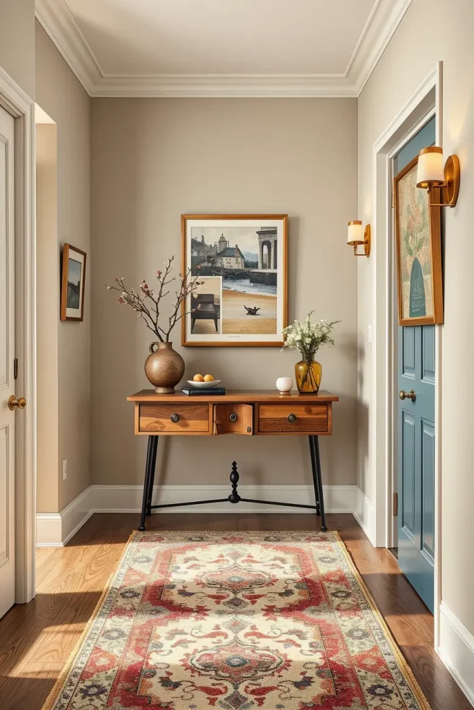 I always turn to vintage items whenever I want a hallway to feel friendly and unique. They make a space look organized and interesting while also resembling pieces that are part of a story. An old mirror, clock or painting gives your décor character and elegance without making it too busy.
