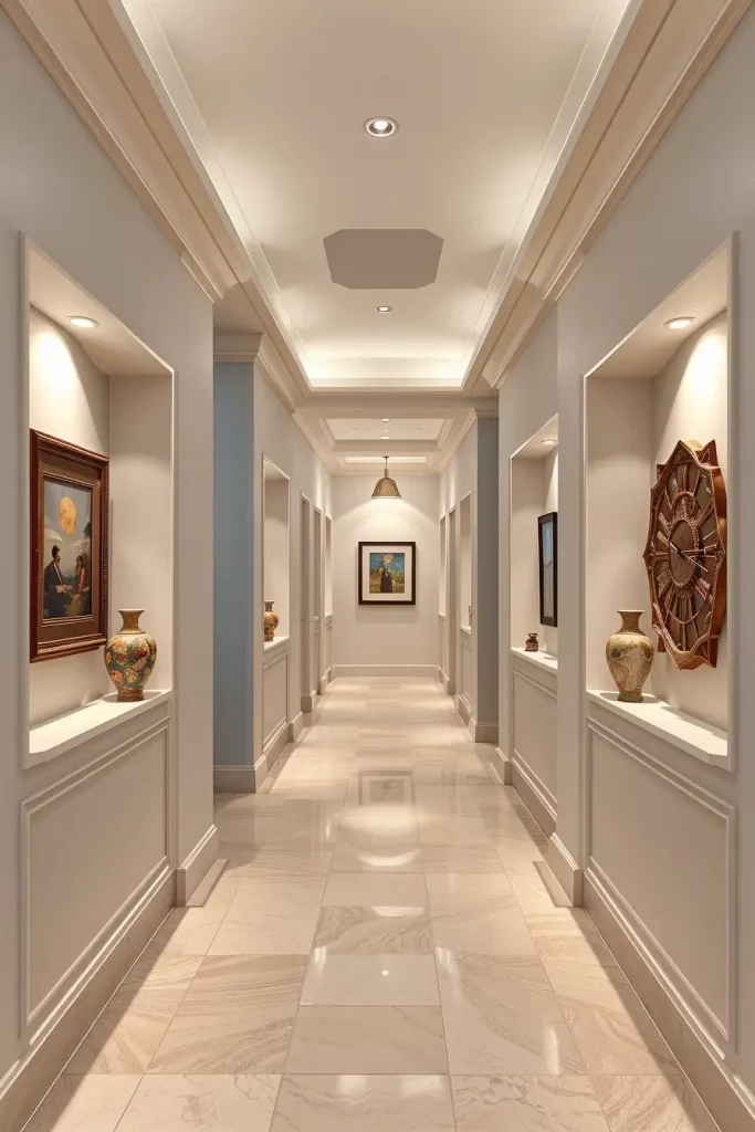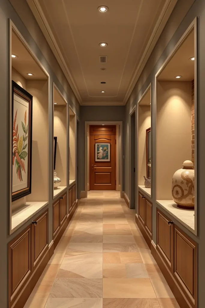 They have made the hallways in my home feel more custom and more luxurious. If you recess a niche and add some warm LED lights, any simple item can be a center of attention. Interior experts recommend that built-ins like this style both personalize your space and make the areas between rooms more engaging.