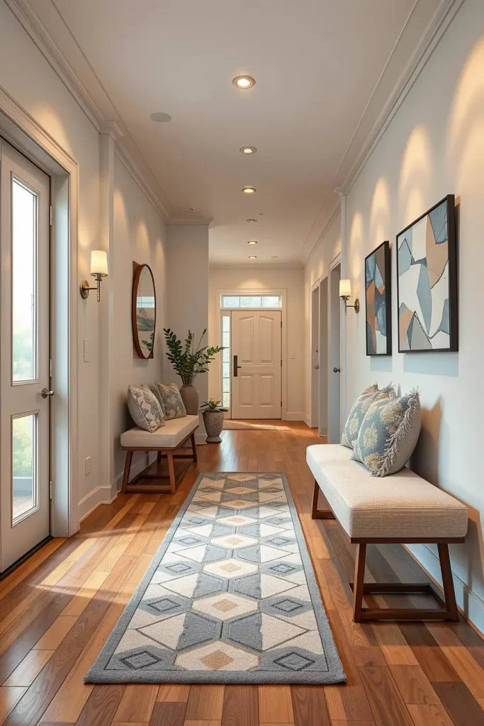 Every idea you’ll see here uses modern design and smart layouts to make the most out of any space, but still keeps a sense of beauty. You might consider seating in a booth-style corridor, using geometric design in the hallway or choosing transitional hallways for a harmonious effect between rooms. Let’s discover how you can make your hallway stand out with simple, reliable tips.