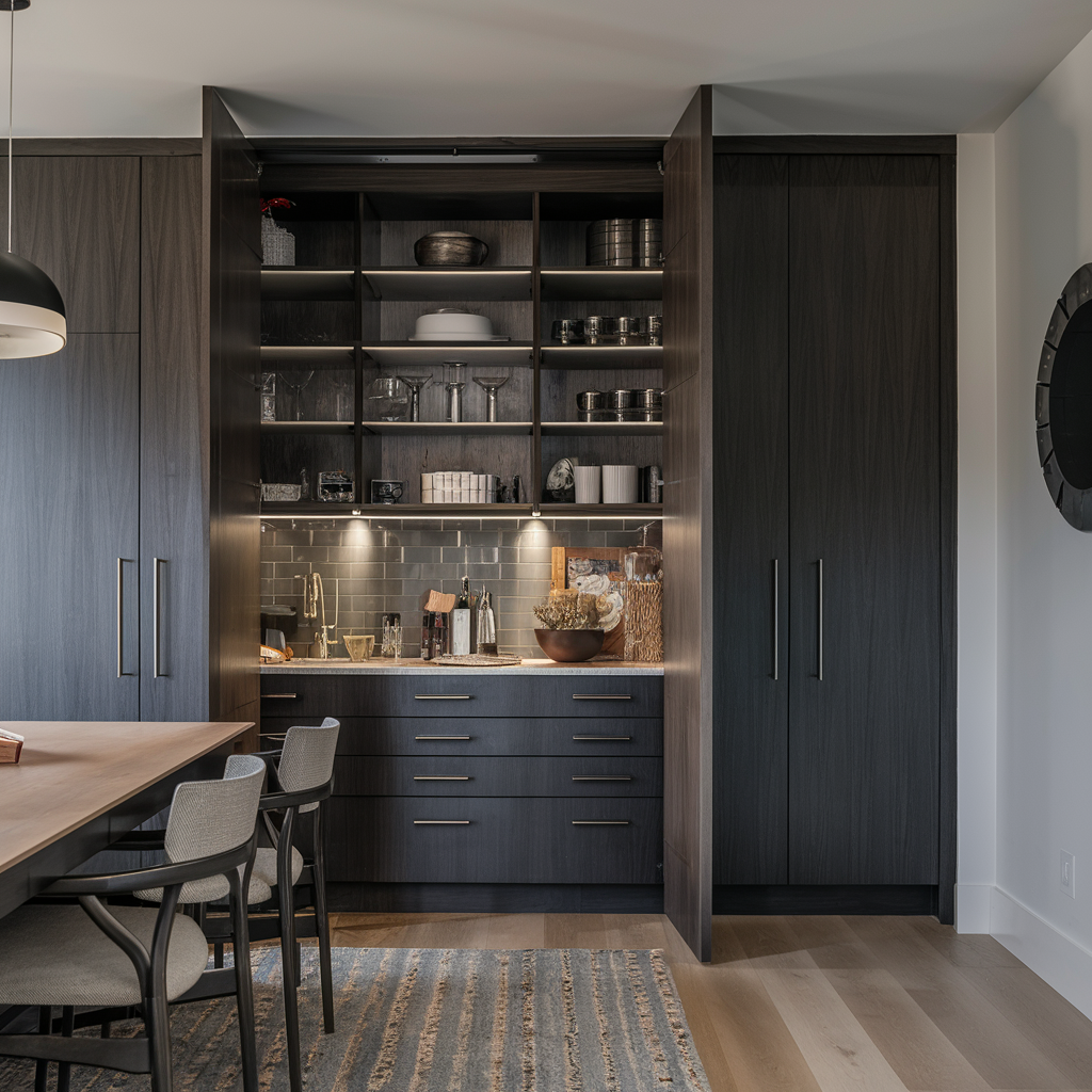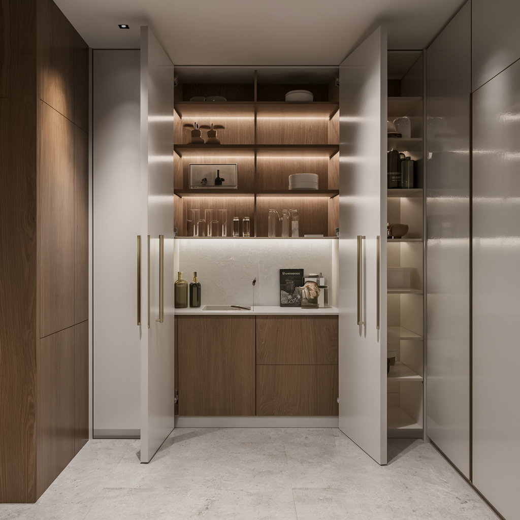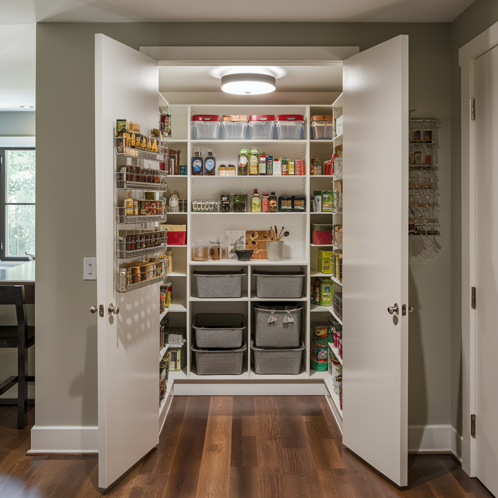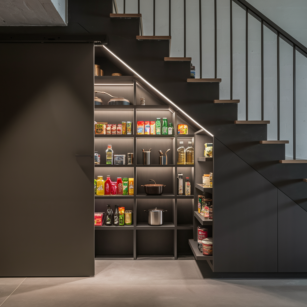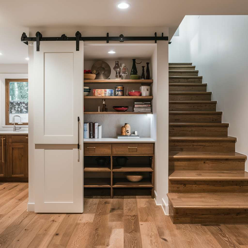 Lighting has a great impact on both the functionality and the atmosphere of a hidden pantry. Guarantee up-lighting in the ceiling for broader illumination, and use LED tape lights under the shelves to highlight the tasks. Dimmable lights help create a warm and enjoyable atmosphere along with ripening the pantry.