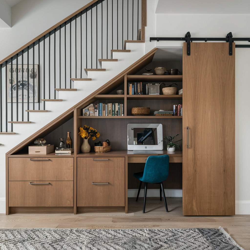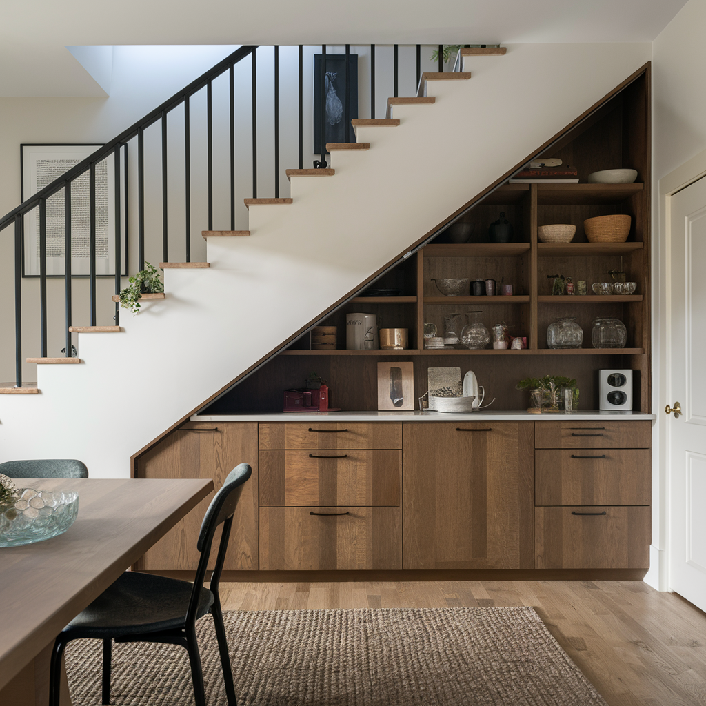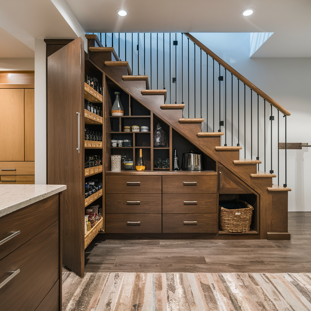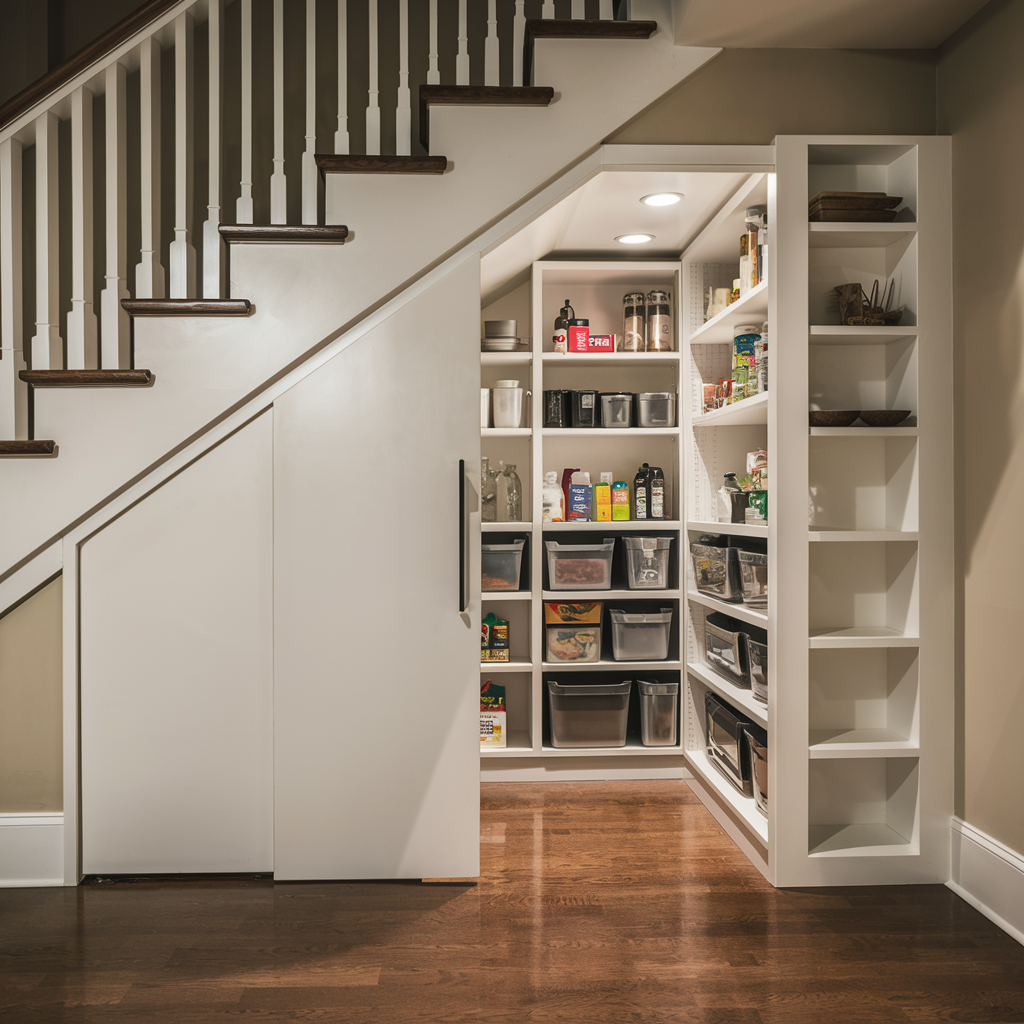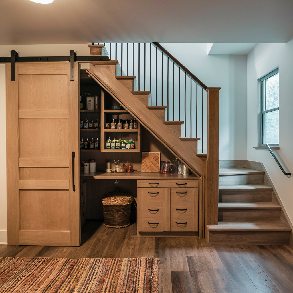 The space under cellar steps is frequently barren, but it can easily be changed into a secret storage space by professionals. It is important to build custom shelving units that take into account the asymmetry of the stairs and make the most of the space. A sliding door or a hinged panel is another viable way of keeping the pantry shut. It’s an ideal spot for storing items like bulk goods or seasonal supplies.