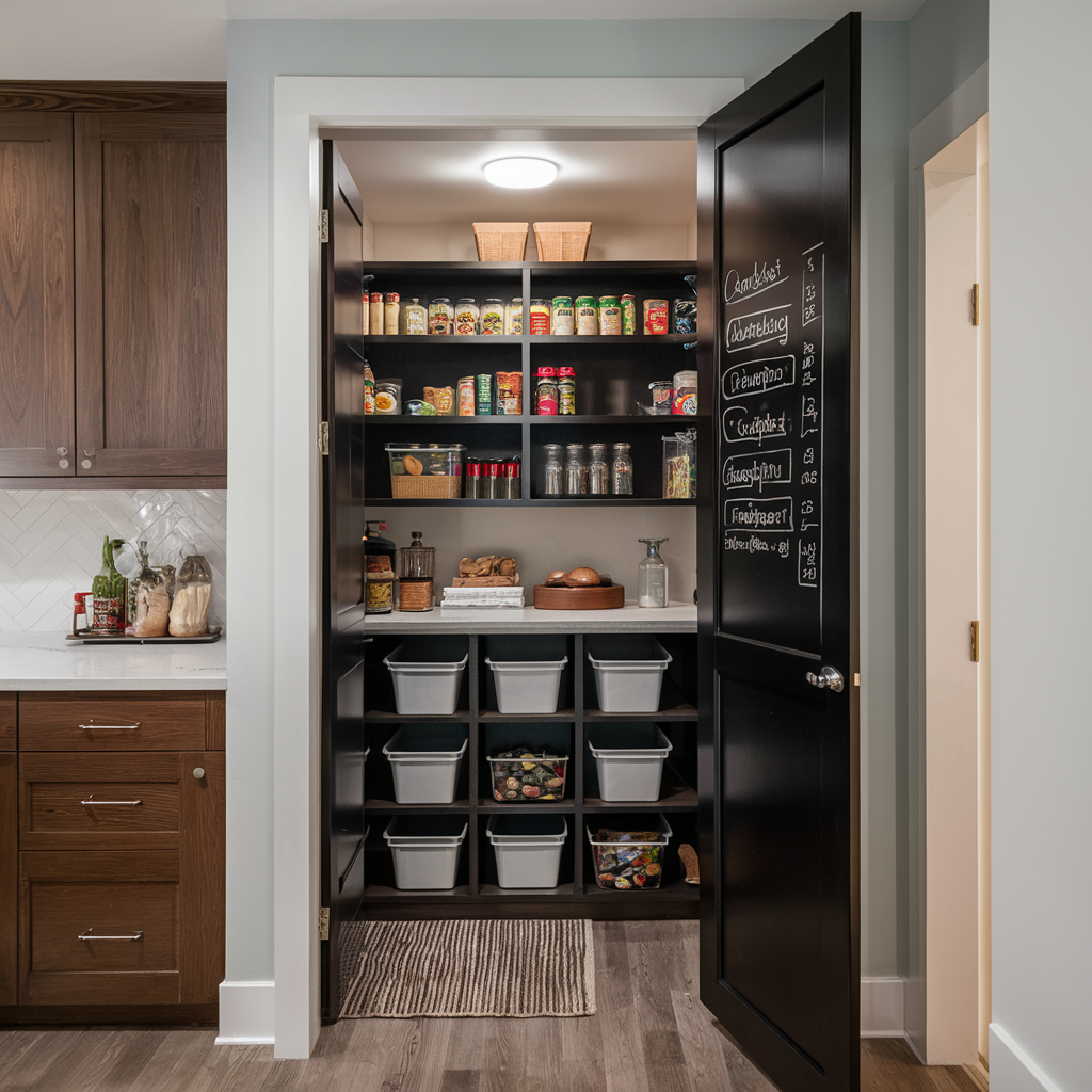 Walk-in Hidden pantries can be improved through the use of personal storage spaces. Install fixed shelves and clear the area of other items. Buy and use only clear containers, so that everybody can clearly see the items. Pull-out drawers and baskets are useful for dividing small items.