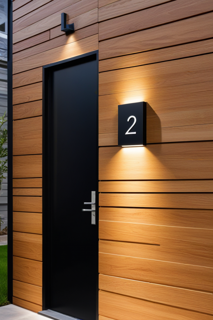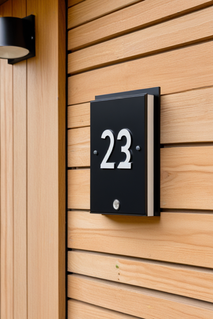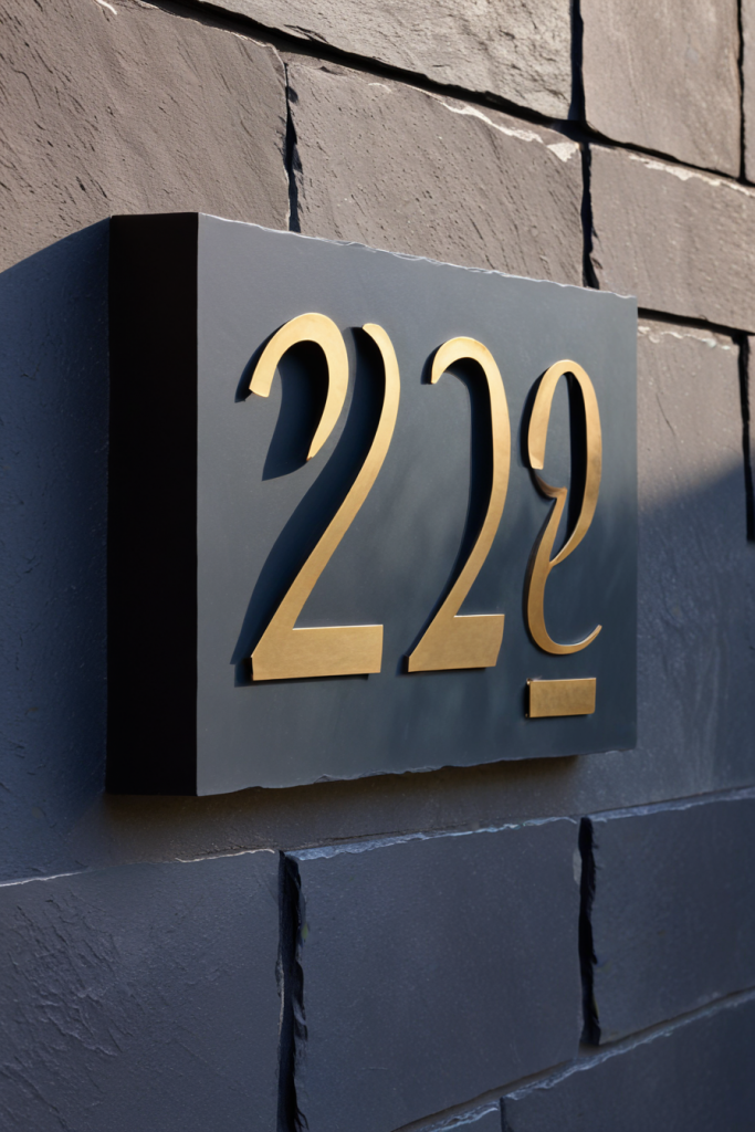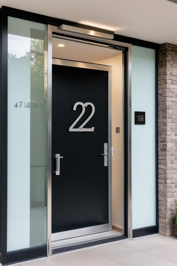 House numbers in apartment complexes should always be clear and visible from a distance. High-contrast signs or individual unit number plaques placed at entrance doors guarantee that visitors and deliveries get to the right place. For a simple, modern look, engraved stones, acrylic, and stainless steel are the materials of choice.