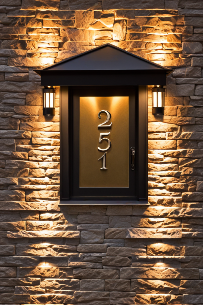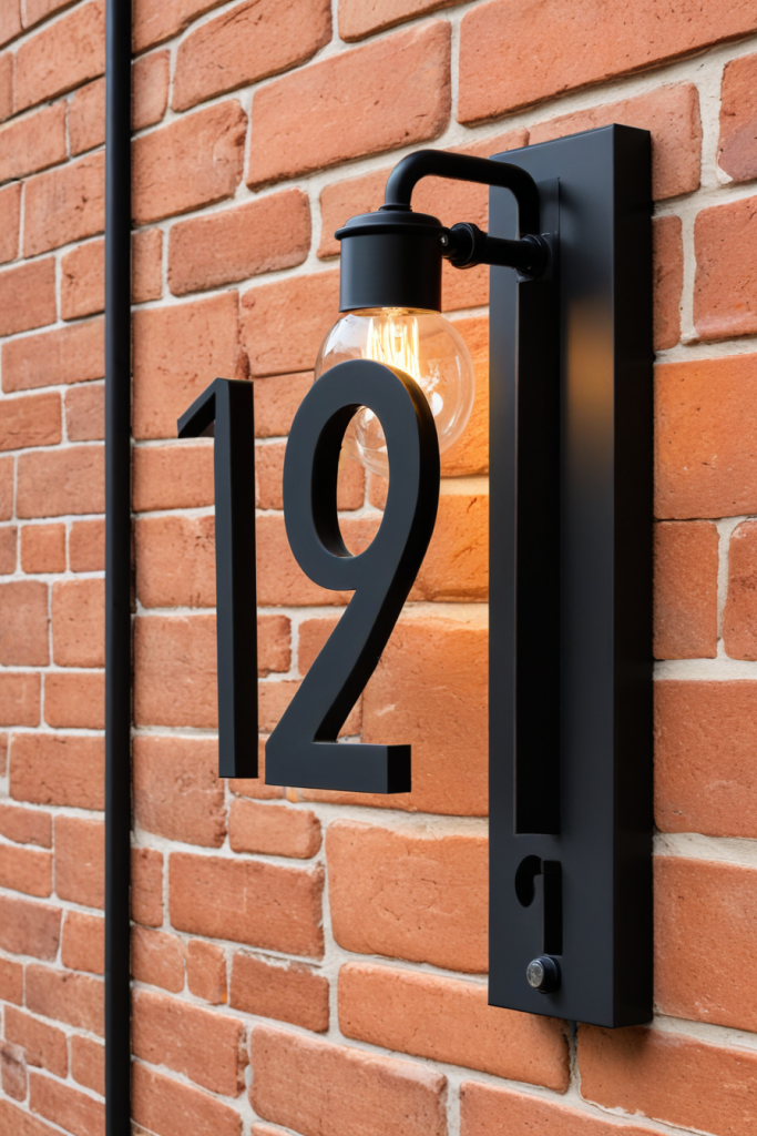 House numbers for homes with brick or stone facades can be designed in such a way as to further enhance their rugged elegance. Metal numbers or engraved stone numbers seamlessly blend with the natural textures, while acrylic, illuminated plastic numbers, and other contrasting materials add a modern detail.