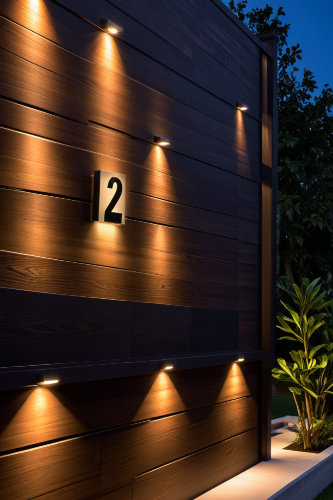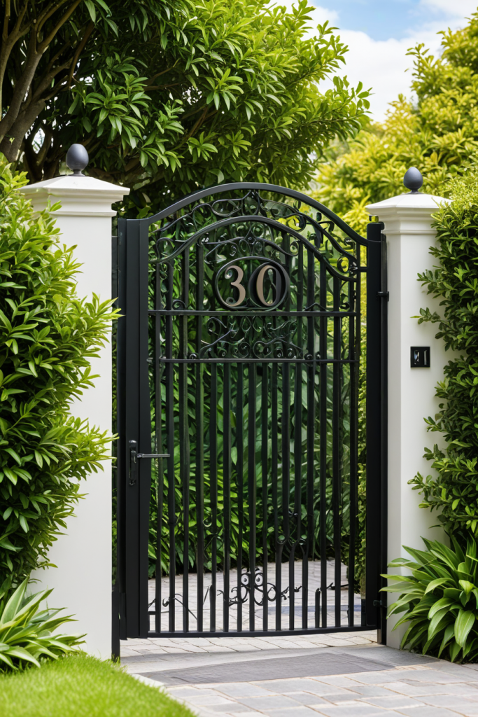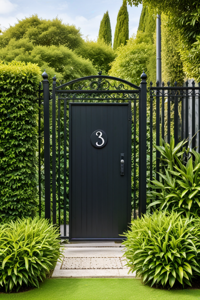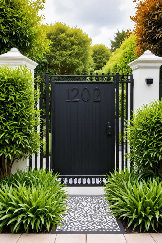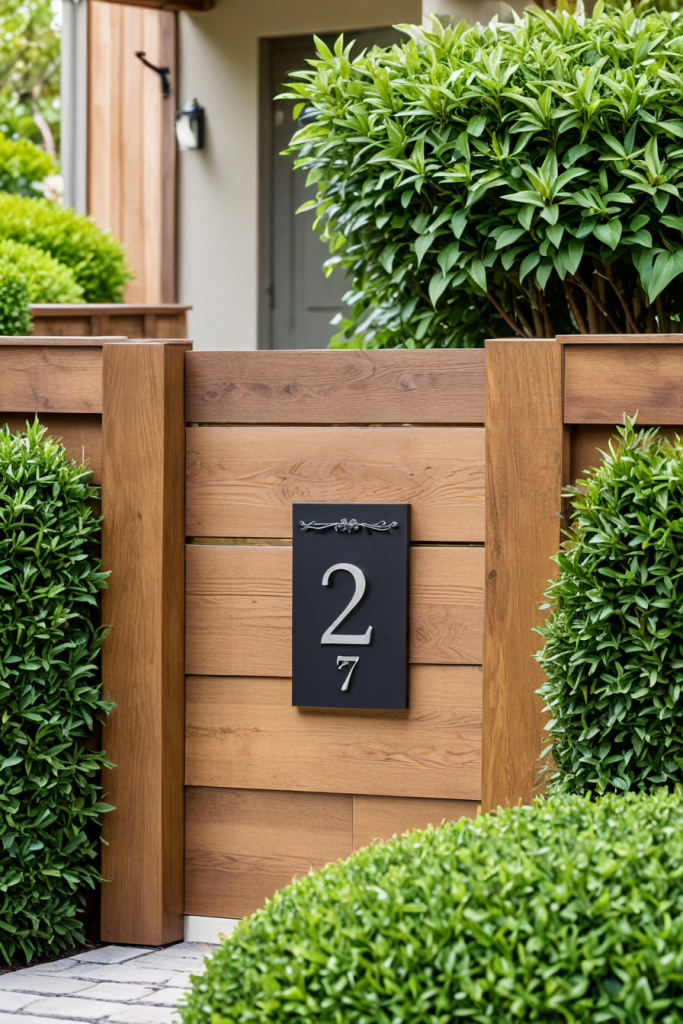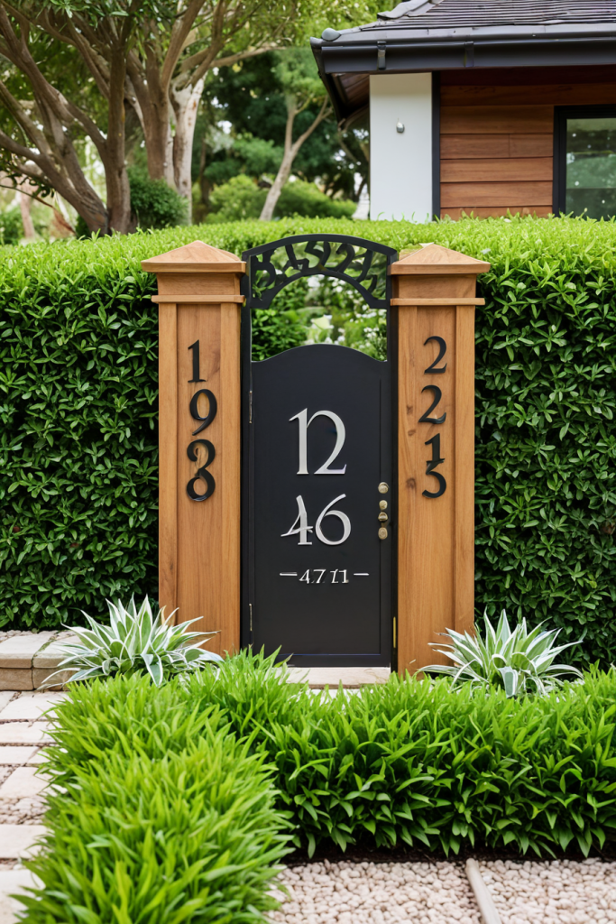 Gated homes can use elaborate fence designs as a canvas for posting house numbers, ensuring functionality and improved exterior design. The fence can be a statement piece using a metal cutout, a wooden engravement or even ceramic tile inlays.