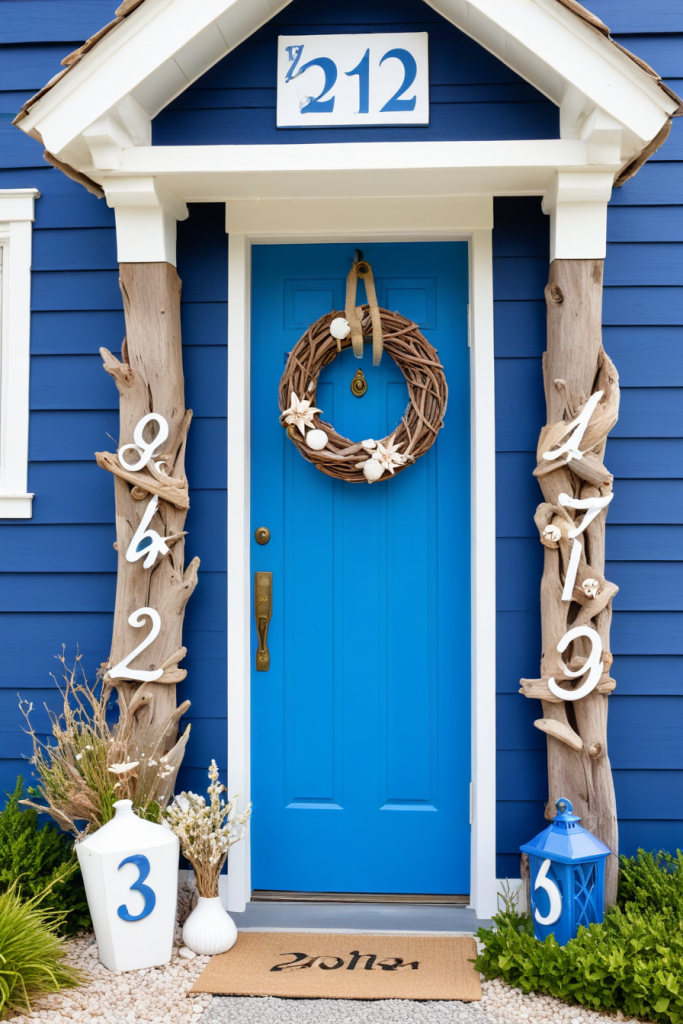 In beach side houses, the designs of house numbers make use of natural materials and ocean themed decorations. Such elements incorporate driftwood, nautical rope, seashell inlays, or even weathered blue and white palettes which all embrace the casual beauty of coastal settlements. While these styles mounted on a wooden board or plastered wall creates an aesthetic appeal, they beautify the relaxed atmosphere of the beach.
